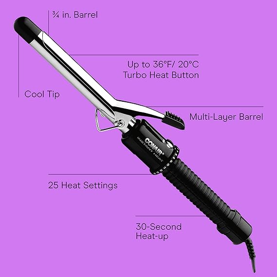 Q185.00 Conair Instant Heat Plancha rizadora con barril de ¾ de pulgada que produce rizos densos. Plástico Hecho en EE. UU. Plancha rizadora de calor instantáneo de 3/4 pulgadas: Ofrece calor instantáneo para un estilo perfecto al instante, calienta en 30 segundos y cuenta con tecnología de barril multicapa para una distribución uniforme del calor, el voltaje dual es ideal para viajes internacionales. Estilo pinpoint: Este rizador cuenta con 25 ajustes de calor y un botón de calor turbo que añade una ráfaga de calor para mayor facilidad de peinado, cuenta con punta fría extra larga para un fácil manejo, un cable de alimentación de 5 pies y apagado automático para mayor seguridad. Para todo tipo de cabello: Crea todo tipo de rizos, ondas y estilos con nuestra gama completa de rizadores tradicionales, minis y una amplia selección de tamaños de barril, incluyendo diámetros extra grandes. Herramientas innovadoras para peinar el cabello: desde rizadores y varitas hasta planchas planas, cepillos de aire caliente, rizadores automáticos y mucho más. Fabricamos herramientas de peinado de alta calidad para todo tipo de cabello. Cuidado del cabello con Conair: Desde 1959 fabricamos pequeños electrodomésticos innovadores, herramientas de peinado y mucho más. Nuestra línea de cuidado del cabello incluye secadores de cabello de alta calidad, cepillos, herramientas de peinado y accesorios para el cabello. Enviamos a toda la republica pago contra entrega. Aceptamos tarjeta de crédito y debito.