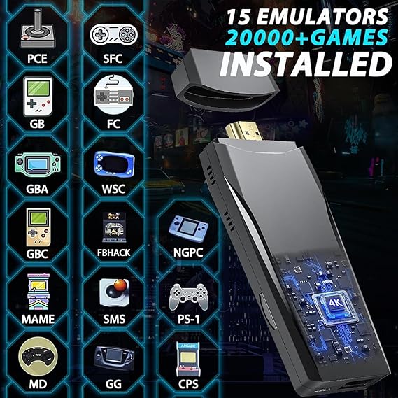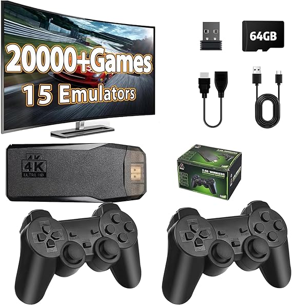 Q285 Consola de juegos retro inalámbrica, más de 20000 juegos, consola de juegos retro clásica M8 64G 【Consola Stick integrada con más de 20000 juegos】: esta consola de juegos inalámbrica para TV incorporada en más de 20000 juegos ricos como acción, rompecabezas, deportes, lucha y carreras, etc., está preinstalada 15 emuladores y paquete con tarjeta TF de 64 GB. No es necesario descargar e instalar por ti mismo, no requiere Internet, puedes jugar más de 20000 juegos clásicos simplemente conectándote al televisor. Experiencia de juego HDMI 4K: el stick de juego HDMI 4K equipado con cable HDMI expandido, salida HD adecuada para diferentes monitores, se puede conectar a TV, computadora, decodificador de TV, PC, computadora portátil, proyector, perfecto para satisfacer tus necesidades de alta resolución y configuración de juego (por favor, asegúrate de que tu televisor/pantalla tenga un puerto de entrada HDMI). 【Hdmi Game Stick con dos controladores】La consola de juegos clásica puede mejorar la comunicación entre padres e hijos al permitir que tus hijos experimenten tu experiencia de crecimiento y felicidad. Equipado con 2 adaptadores de controlador inalámbrico de 2.4 GHz, plug and play, sensación cómoda en la mano, puedes compartir mejor tu diversión con familiares o amigos, junto con sonido original para una mejor experiencia de juego. Consola de videojuegos retro Plug & Play: simplemente conecta la consola de juegos retro inalámbrica 4K a la fuente de alimentación, luego conéctala al televisor, cambia la fuente de señal de TV al canal HD. Proceda de la siguiente manera: 1. Conecte la salida HD del televisor. 2. Inserte la tarjeta de juego TF incorporada. 3. Utilice el adaptador de carga para conectarse al televisor. 4. El stick de juego se encenderá automáticamente cuando el adaptador de carga esté conectado al televisor. Idea perfecta para regalos de Pascua: sorprende a tus seres queridos con el regalo de la nostalgia. Nuestra consola de juegos retro es un excelente regalo para cumpleaños, aniversarios, Pascua, Día del Padre o cualquier ocasión especial. ¡Causa una impresión duradera con un viaje en el tiempo! Enviamos a toda la republica pago contra entrega. Aceptamos tarjeta de crédito y debito.
