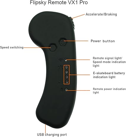Q225 Control remoto Flipsky VX1 de 2,4 GHz para patineta con receptor universal, inalámbrico ⚠️ NOTA: El kit incluye control y receptor, pero no incluye antena externa ni arnés de conexión al ESC (cable JST). Adoptando tecnología inalámbrica, admite 3 modos de velocidad y modo de control de crucero. Con dirección, giro hacia adelante, hacia atrás, se puede utilizar durante al menos 4 horas, te permite disfrutar de la diversión del patinaje. Luces de indicación de potencia remotas y E-skate, ayuda a comprobar el volumen remoto de la batería Soporta modo de control de crucero y soporta 3 modos de velocidad. Enviamos a toda la republica pago contra entrega. Aceptamos tarjeta de crédito y debito.