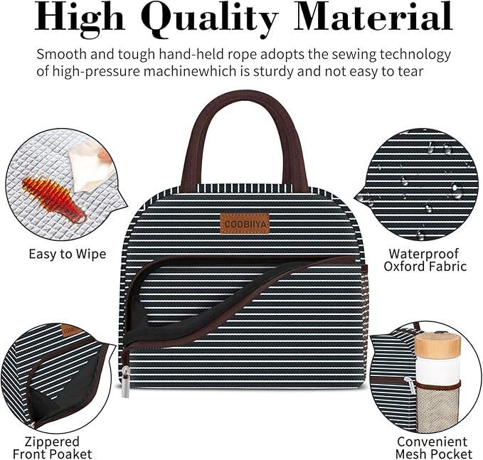 Q115.00 Coobiiya Lonchera para mujeres, adultos, hombres, pequeña, a prueba de fugas. Portátil y versátil: la lonchera Coobiiya es súper ligera, fácil de transportar y el tamaño estándar perfecto. Se puede utilizar como una bolsa de almuerzo, bolsa de compras, bolsa de picnic o bolsa de maquillaje para adultos, profesores, mujeres, hombres, enfermeras y mucho más Gran capacidad: la lonchera Coobiiya tiene capacidad para varios recipientes de alimentos, con capacidad para aproximadamente 10 litros o 16 latas de bebidas de 11.2 fl oz. Es lo suficientemente compacto como para caber en tu refrigerador o armario de almacenamiento, por lo que es ideal para empacar comidas abundantes y aperitivos Diseño de múltiples bolsillos: la lonchera cuenta con un bolsillo frontal con cremallera para cubiertos, servilletas, llaves, teléfonos móviles, tarjetas de autobús, pañuelos, goma de mascar y otros objetos pequeños. También tiene un bolsillo lateral de malla para botellas, un recipiente de leche de chocolate o un paraguas Construcción resistente: la lonchera para mujer está hecha de papel de aluminio de alta calidad y de grado alimenticio y cuenta con asas resistentes con costuras ajustadas para mayor resistencia. Elegante y versátil, viene en colores vibrantes y es adecuado para todas las ocasiones Defendemos la calidad: las loncheras Coobiiya se utilizan tanto para hombres como para mujeres, nuestra bolsa de almuerzo grande está diseñada para hacer tu vida más cómoda. Si tiene alguna pregunta, háganoslo saber. Enviamos a toda la republica pago contra entrega. Aceptamos tarjeta de crédito y debito.
