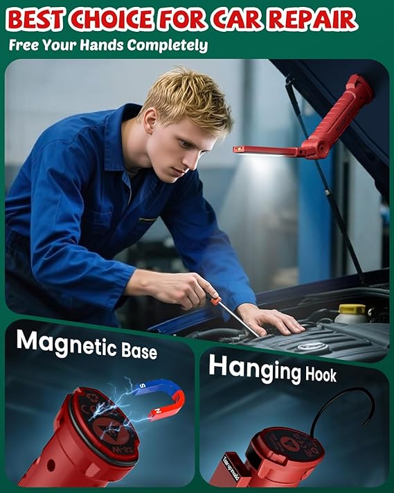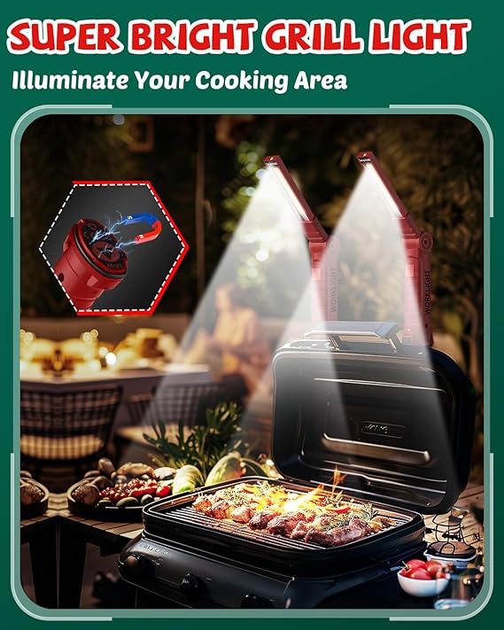 Q285 Coquimbo luz LED recargable, accesorios para parrilla, linterna magnética con gancho para colgar Resistente y portátil: esta luz de trabajo led está hecha de goma dura, antisudor y antideslizante, la cabeza es de aluminio que disipa el calor de manera efectiva, prolonga la vida útil de la lámpara. Gracias al diseño plegable, la lámpara es fácil de transportar y ahorra espacio de almacenamiento 5 modos y recargable: batería recargable incorporada, recargable por puerto USB (USB CA incluido), no necesitas comprar otra batería, esto te ahorrará costos, tiempo y esfuerzo. Tiene 5 modos de iluminación: alto brillo, brillo medio, luz delantera, luz roja, luz estroboscópica roja (pulsa el botón del interruptor 3 segundos para cambiar a los modos de luz roja) Rotación de 360 grados, base magnética y gancho: rotación de 360 grados proporciona iluminación multiángulo, base magnética y gancho hacen que su mano sea libre para hacer otras cosas en la noche. Se puede utilizar para barbacoa, camping, lectura, reparación de automóviles y cualquier otra cosa que quieras hacer por la noche Portátil y versatilidad: es muy compacto con 5.8″ plegado y solo 4.9 oz de peso (4.94 oz), son lo suficientemente pequeños como para caber en muchos lugares diferentes. 3 modos de luz blanca que se pueden utilizar como linterna, luz de trabajo, luz de parrilla; 2 modos de luz roja se pueden utilizar como una luz de emergencia Lo que obtienes: el paquete incluye 2 luces de trabajo recargables y 2 cables USB. Es una herramienta muy genial para hombres, papá, marido, abuelo, novio, hermano, amigo, para uso diario, especialmente adecuado para cumpleaños, día del padre, Navidad, relleno de calcetines para hombres. Enviamos a toda la republica pago contra entrega. Aceptamos tarjeta de crédito y debito.