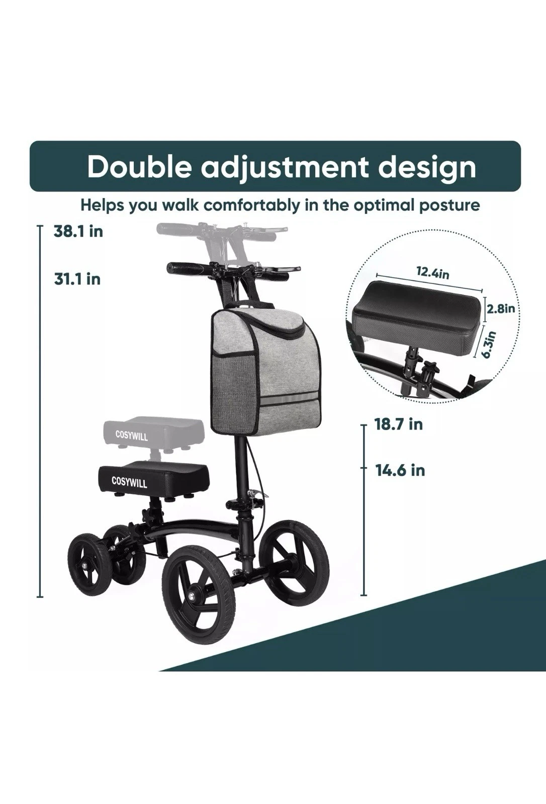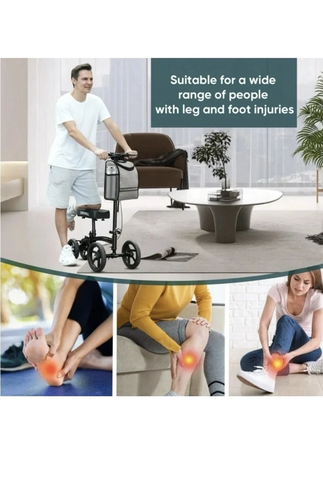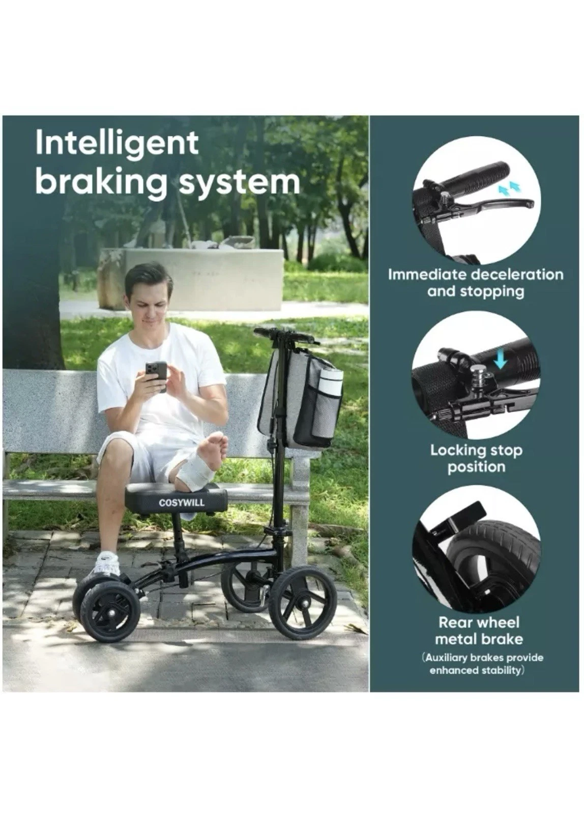 Scooter de rodilla orientable COSYWILL, andador de rodilla económico, todo terreno plegable.