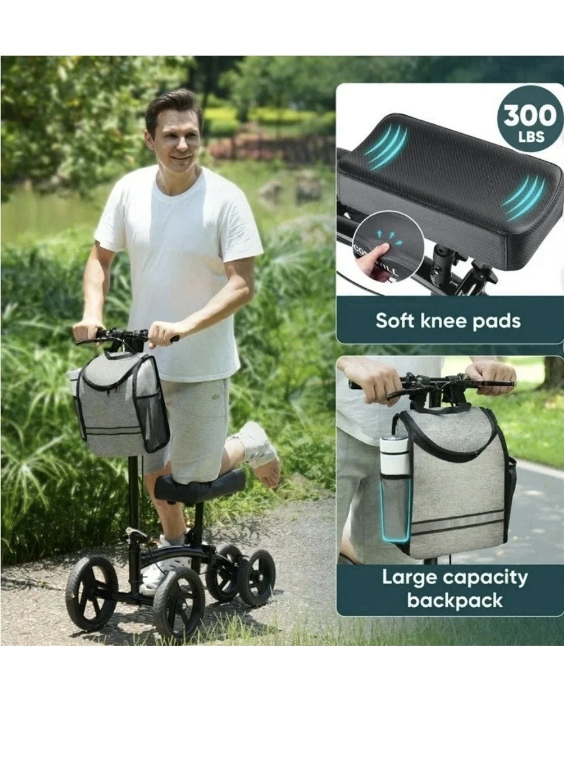 Q1295 COSYWILL Patinete de rodilla orientable, andador de rodilla económico, plegable todo terreno, negro