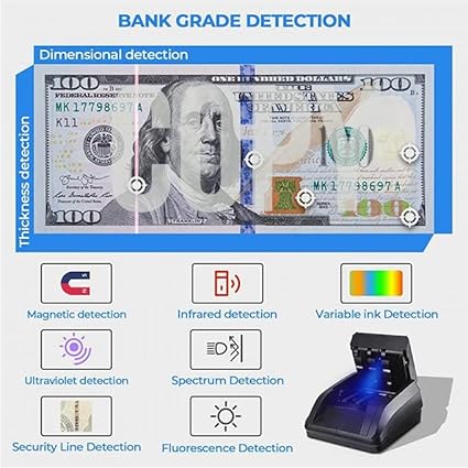Q865.00 Detector de billetes falsificados K605 para dólares estadounidenses, alimentación automática. Escanea las facturas en nueve métodos de detección en busca de UV (ultravioleta), MG (magnético), IR (infrarrojo), dimensiones, grosor, línea de seguridad, tinta variable, detección de espectro, detección de fluorescencia, potente para ayudarlo a detectar billetes falsificados y falsificados Pequeño y ligero, hecho de material de alta calidad, fácil de transportar y almacenar. Ampliamente utilizado en tiendas, tiendas de comestibles, restaurantes, hoteles, vendedores ambulantes, pequeñas empresas, etc Muestra la SUMA TOTAL Y CANTIDAD de los billetes aceptados contados. Inserte la factura de cualquier manera (DETECCIÓN DE 4 FORMAS). Admite la detección de moneda estadounidense, el detector de billetes puede detectar la densidad de moneda, con una pantalla de visualización grande, puede mostrar el tipo de moneda, la dirección de salida de la moneda, las facturas totales y el valor total, claro para ver a una velocidad de <0.5s/hoja Fuente de alimentación: AC100V-240V 50/60Hz. El detector entrará en modo de suspensión después de 3 minutos de ralentí para ahorrar energía, se puede despertar tocando cualquier llave o alimentando un billete. Si la máquina está inactiva durante más de 5 minutos, la máquina se apagará automáticamente. Enviamos a toda la republica pago contra entrega. Aceptamos tarjeta de crédito y debito.