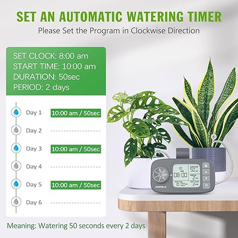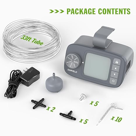 Q345.00 DIAFIELD Sistema de riego automático para plantas en maceta (solo en rosado con verde). Kit de riego automático por goteo: mejora tu rutina de riego con nuestro sistema de riego automático, eliminando la necesidad de molestias diarias de riego y permitiéndote cuidar tus plantas sin esfuerzo Siéntete última intervensión de montar: este sistema viene con un conjunto completo de componentes para una fácil instalación. Corta y personaliza las tuberías de agua para diseñar un exclusivo sistema de riego adaptado a tus propias preferencias. Fácil de usar: con una generosa visualización LCD, que le proporciona una manera rápida y sin esfuerzo de controlar el estado del sistema. Con un temporizador programable de 30 días, puedes controlar fácilmente cuándo y cuánta agua reciben tus plantas. Diseño de ahorro de agua: el uso de estacas de riego puede ahorrar al menos un 70% de agua. El sistema riega las plantas en función de horarios preestablecidos y cantidades de agua, reduciendo los residuos de agua y promoviendo prácticas de jardinería respetuosas con el medio ambiente. Ideal para día festivo y días ocupados: bueno para día festivo y días de trabajo ocupados, nuestro sistema garantiza que tus plantas reciban un suministro de agua constante, promoviendo un crecimiento saludable incluso cuando estás lejos de casa. Enviamos a toda la republica pago contra entrega. Aceptamos tarjeta de crédito y debito.