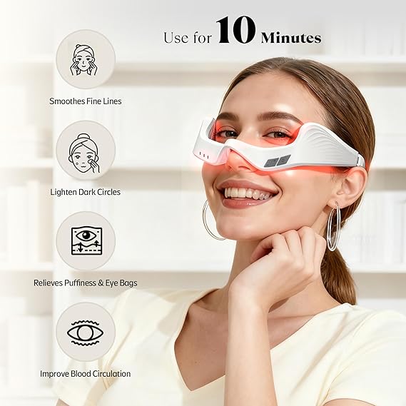 Q295 Dispositivo de terapia de luz roja debajo de los ojos, gafas de terapia de luz roja, masajeador de ojos microcorriente 4D para reducir las ojeras, la hinchazón y las líneas finas