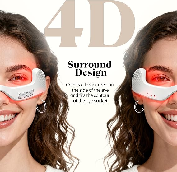 - Masaje de ajuste perfecto 4D: los lentes de luz roja cuentan con un diseño envolvente que se adapta a diferentes contornos de ojos y formas de cara, cubriendo un área lateral más grande para garantizar que la microcorriente y la luz roja funcionen uniformemente alrededor de los ojos, mientras que se incluye una diadema elástica ajustable