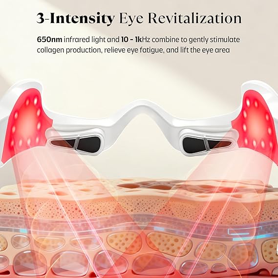 - Revitalización de luz roja: utiliza luz roja segura de 650 nm y tecnología de microcorriente EMS (10-1k Hz) para aumentar suavemente la producción de colágeno. Solo 3-10 minutos de uso diario ayuda a reducir las ojeras y la fatiga ocular por el tiempo prolongado de pantalla y la falta de sueño