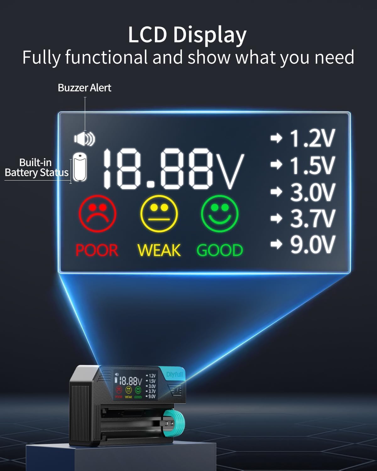 Pantalla LCD inteligente: el probador de batería digital preciso muestra lo que necesita saber sobre el voltaje y el estado de la batería, indicando con precisión si el voltaje es bueno, débil o pobre