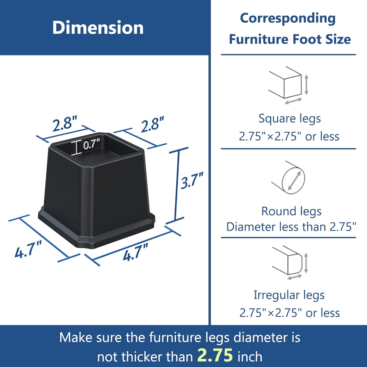 Q195 Incluye 4 elevadores de cama resistentes de 3 pulgadas, elevadores de muebles para marco de cama, sofá