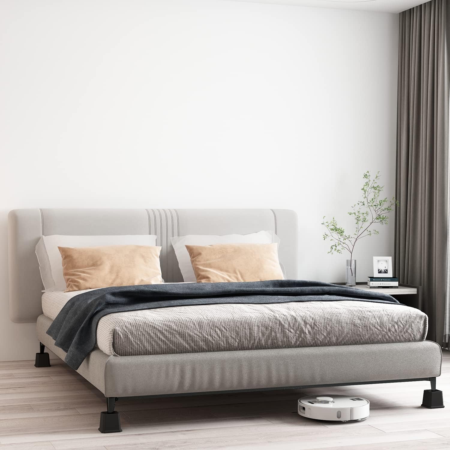 Espacio de almacenamiento: Las alturas adicionales aumentadas de los elevadores de marco de cama de 3 pulgadas pueden almacenar más pertenencias, como caja, edredón, ropa, conveniente para almacenar y conseguir. Te ayuda a liberar un espacio de actividad de habitación más amplio.