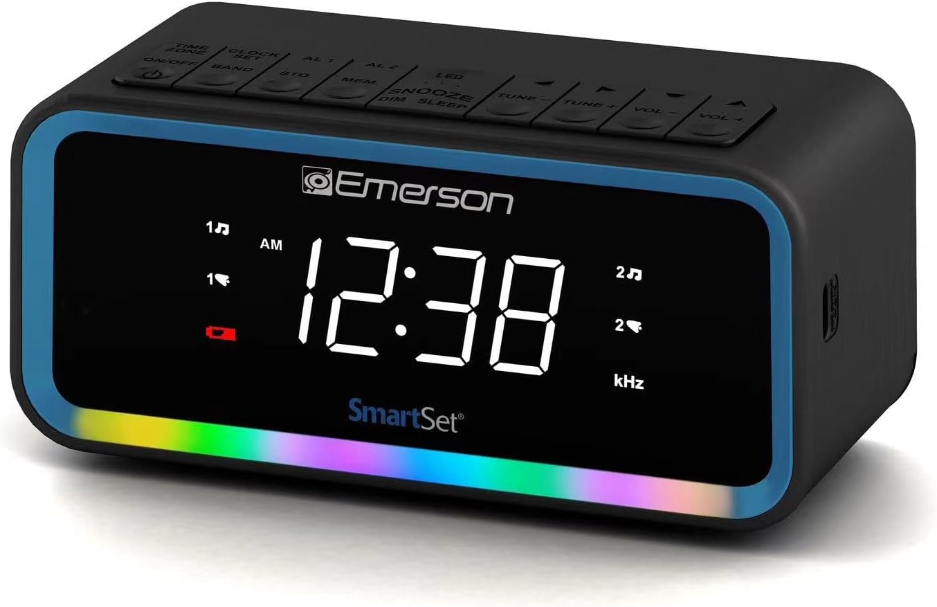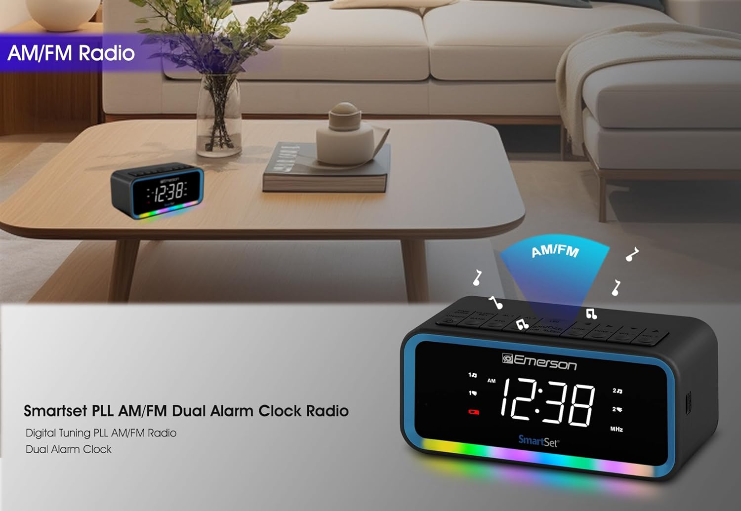 Emerson CKS1401 Smartset AM/FM – Radio despertador dual con pantalla LED blanca de 0.9 pulgadas con control de atenuador de 4 niveles