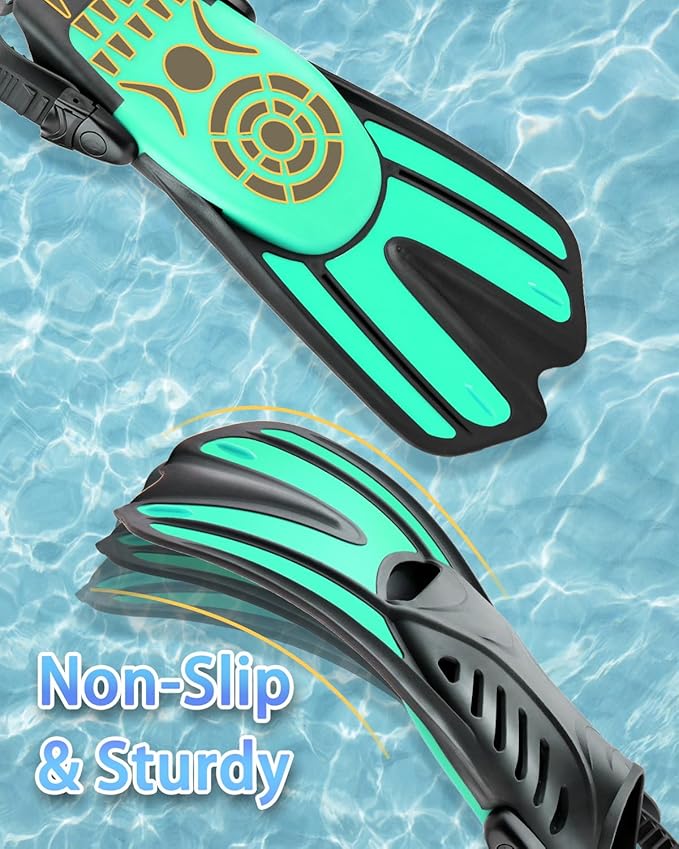 Aletas de esnórquel ajustables y flexibles: la hoja más corta, ligera y sensible garantiza patadas suaves, fáciles y potentes, proporcionando una excelente potencia y eficiencia de ahorro de energía. Flexible y tiene una suela antideslizante para evitar calambres y minimizar la fatiga. El diseño de talón abierto fácil de ajustar te permite eliminar la necesidad de comprar aletas de diferentes tamaños para cada uno de nuestra familia.