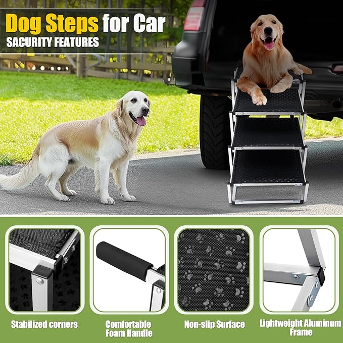 Q665 Escaleras plegables para perros con superficie antideslizante, escalones portátiles, 4 escalones Multifuncional: estos peldaños para perros vienen en cuatro pasos. Los escalones para perros ofrecen dos opciones de ángulo: ángulo bajo y estiramiento normal. La altura ajustable garantiza la idoneidad para varios perros en diferentes escenarios, como sedanes, SUV, minivans, camiones, camas, sofás, mesas de aseo o mesas veterinarias Superficie antideslizante: estas escaleras para perros para automóvil se han mejorado con una superficie de revestimiento antideslizante con estampado de patas, proporcionando una excelente tracción y evitando que los perros se resbalen. La superficie de revestimiento antideslizante con estampado de patas permite que tu perro camine con confianza hacia arriba y hacia abajo sin que los escalones se deslicen o se tambaleen. Además, la alfombrilla de goma antideslizante unida a los marcos y la parte inferior de la escalera del perro garantiza que las escaleras permanezcan estables, ofreciendo una ultra seguridad para tus mascotas en superficies resbaladizas. La correa de seguridad, equipada con un mosquetón de acero inoxidable en el pestillo del portón trasero, proporciona doble protección para tus perros Material de alta calidad: estos peldaños para perros cuentan con un marco general de aleación de aluminio a prueba de óxido, combinando un diseño ligero con una estructura robusta. Cada paso es excepcionalmente duradero y estable, capaz de soportar hasta 250 libras de peso de tu amigo peludo. Las escaleras están diseñadas para permanecer estables sin sacudirse fácilmente mientras tu perro sube, asegurando fuerza, estabilidad y robustez. Perfecto para viajes, picnics, campamento y como equipo esencial al aire libre en casa. Enviamos a toda la republica pago contra entrega. Aceptamos tarjeta de crédito y debito.