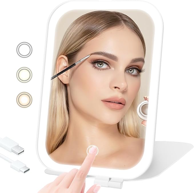 Q155.00 Espejo de maquillaje de viaje, espejo portátil con luz, 3 ajustes de luz ajustables Espejo de maquillaje de viaje compacto: hecho de ABS y vidrio de alta calidad, este espejo ofrece un reflejo claro de tus características y es más resistente que los espejos de plástico estándar. Nuestro espejo de viaje iluminado mide 7.9 x 5.4 pulgadas y pesa 10.93 oz, lo que garantiza que sea ligero y de tamaño moderado para un fácil transporte. Su diseño elegante que ahorra espacio es perfecto para tus viajes. Espejo de viaje recargable por USB: este espejo incluye una batería de litio de 1,100 mAh y un cable de carga USB, proporcionando más de 2 horas de uso con una sola carga. Se puede cargar desde una computadora portátil, banco de energía portátil o cualquier cargador estándar a su conveniencia. Su diseño robusto le permite colocarse firmemente en mesas o cualquier superficie plana. Tres modos de iluminación de color versátiles: con 50 luces LED brillantes que rodean el espejo, puedes lograr la aplicación de maquillaje perfecta en entornos tenues o poco iluminados. Simplemente toca el botón de luz para recorrer tres opciones de color para adaptarse a tus necesidades: luz blanca para simulación de luz diurna, luz natural brillante para uso en interiores y luz amarilla suave para un ambiente de fiesta. Control táctil inteligente: el brillo de la luz LED se gestiona mediante un interruptor de sensor táctil, lo que te permite atenuar o iluminar la luz con una pulsación prolongada en el interruptor. Toque el interruptor para alternar entre los niveles de brillo del 100%, 50% y 10%. La función de memoria de brillo garantiza que tu configuración preferida esté lista para tu próximo uso. Perfecto para regalar: antes del primer uso, retira la película protectora de la superficie del espejo. Este espejo de maquillaje está elegantemente empaquetado con un diseño minimalista y elegante, por lo que es una excelente opción de regalo. Es perfecto para el día de la madre, día de San Valentín, Navidad o cualquier evento especial, ideal para regalar a madres, esposas, hermanas, novias, profesionales del maquillaje y cualquier persona que aprecie los regalos reflexivos. Sorpréndelos con algo único. Enviamos a toda la republica pago contra entrega. Aceptamos tarjeta de crédito y debito.