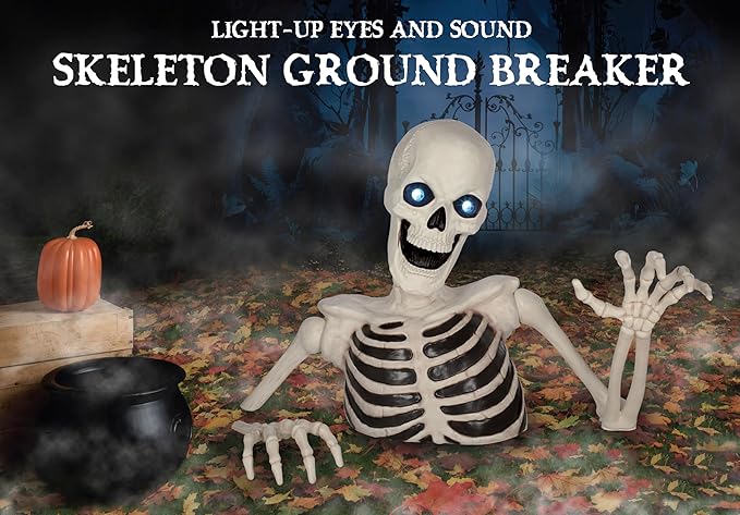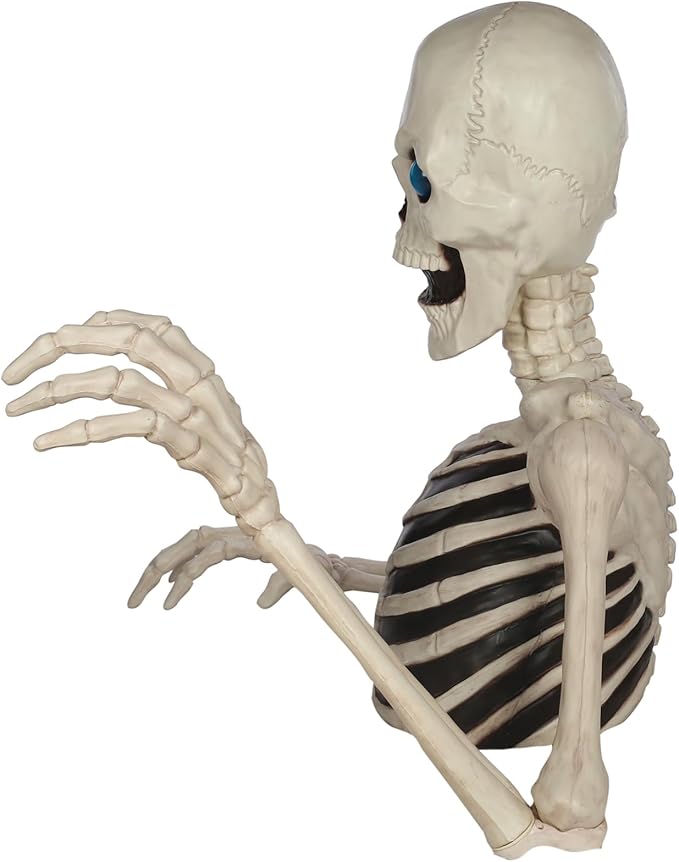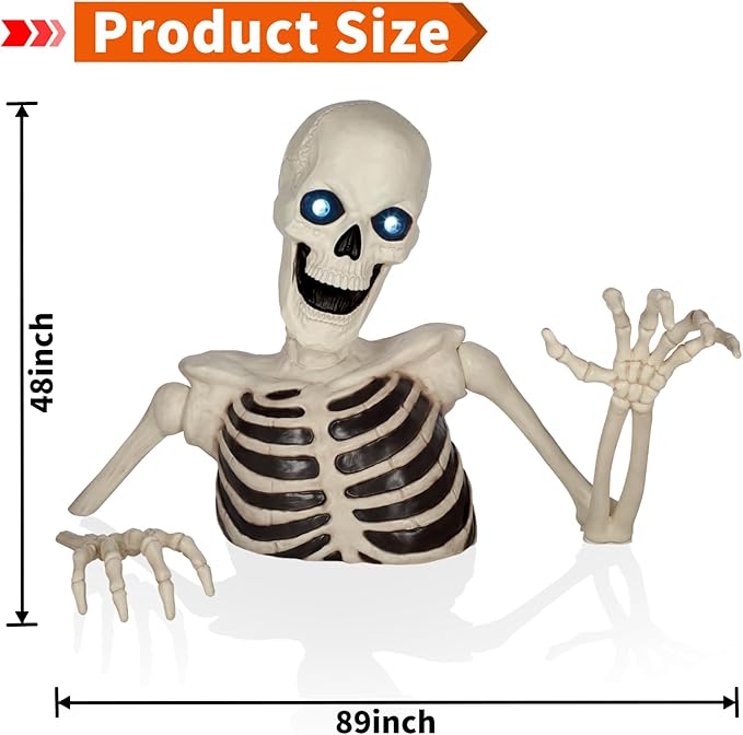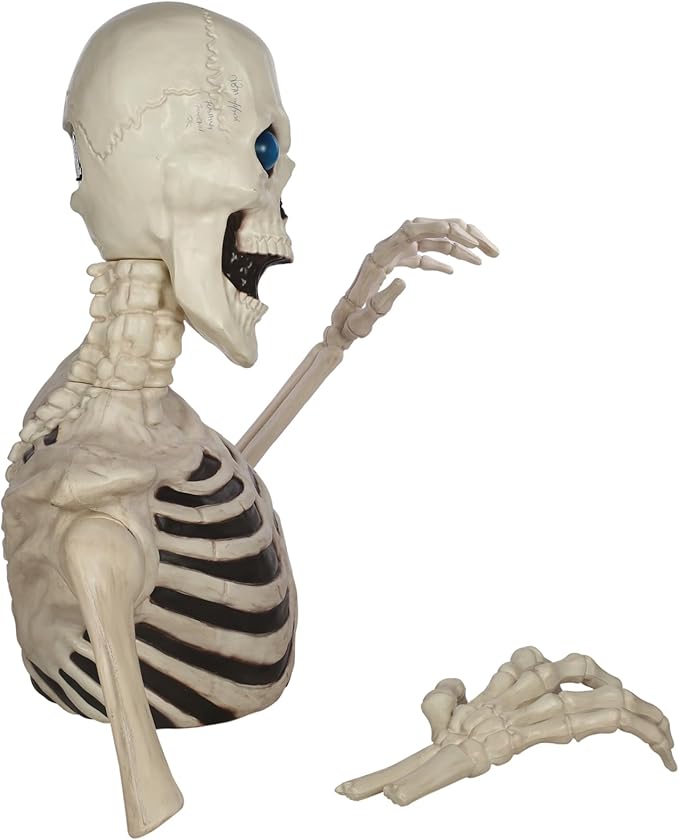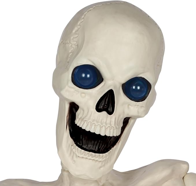 Esqueleto gigante de Halloween de 48 pulgadas con ojos móviles con luz LED, efecto de sonido