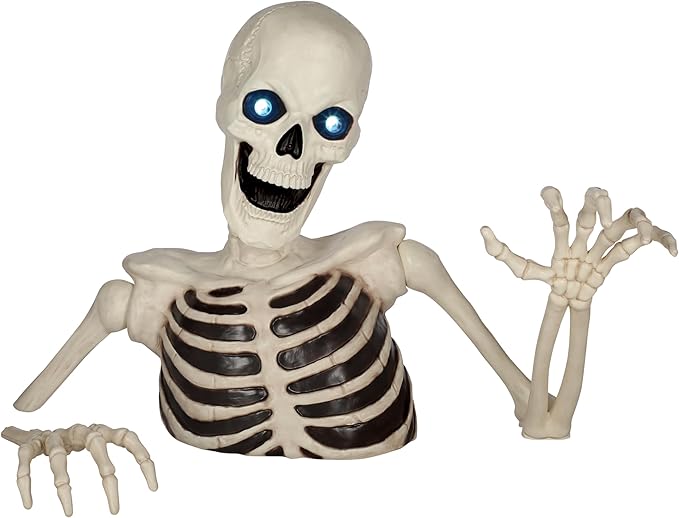 Q2,700 Esqueleto gigante de Halloween de 48 pulgadas con ojos móviles con luz LED, efecto de sonido Tamaño gigante: de pie a 48 pulgadas de alto, este esqueleto innovador crea una presencia imponente en tu exhibición de patio de Halloween CARACTERÍSTICAS INTERACTIVAS: Cuenta con ojos en movimiento con luz LED que crean un efecto inquietante e inquietante en la oscuridad EFECTOS DE SONIDO: Incluye efectos de sonido espeluznantes que mejoran la atmósfera espeluznante de tu decoración de Halloween Diseño único para parecer como si el esqueleto estuviera emergiendo del suelo, perfecto para crear una escena dramática Exhibición versátil: adecuado tanto para decoración de patio como de porche, por lo que es una adición versátil a tu configuración de Halloween Enviamos a toda la republica pago contra entrega. Aceptamos tarjeta de crédito y debito.