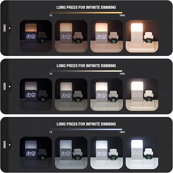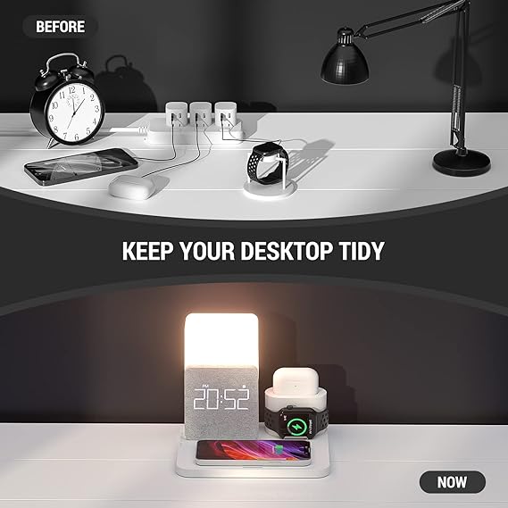 Q325.00 Estación de carga inalámbrica, estación de carga 7 en 1, reloj despertador con cargador inalámbrico [Carga certificada de seguridad] Diseño de cargador inalámbrico de carga rápida de 15 W. Con protección contra sobrecorriente, protección contra sobretensión y protección contra sobretemperatura, así como función de detección de objetos extraños, puede evitar daños por sobrecarga de la batería del equipo. [Carga inalámbrica adaptable] El modo de carga de 15 W es para iPhone 17/16/15/14/13/13 Pro/Pro Max /13 Mini/13 Pro Max/12 8W iphone11/XS/XR/X/8 con el último sistema iOS; el modo de carga de 15 W es compatible con S24/S23/S22/S21/S20. /Nota 10/10 Plus/S10/S10 Plus/S10E y así sucesivamente; el modo de carga de 5 W funciona en cualquier dispositivo como Google Pixel 3/3XL/4XL y otros teléfonos, estación de carga de iPhone. Estación de carga 3 en 1: puedes cargar tus productos Apple simultáneamente a través de la estación de carga COLSUR 3 en 1, soporta carga rápida para iPhone, iWatch y Airpods al mismo tiempo. También hay un puerto USB adicional que puede cargar algo más. [¿Qué hicimos en 2024? ] Según los comentarios de los usuarios, hemos actualizado la sección del reloj despertador a un diseño de reloj de alarma dual y simplificamos el proceso de configuración, lo que facilita su uso. [Reloj y lámpara mejorados ajustables] El uso de chip inteligente y batería integrada da la función de memoria del reloj despertador. La pantalla del reloj despertador tiene 3 tipos de brillo que se pueden ajustar y apagar. No molestes tu sueño. Las luces nocturnas tienen tres modos de color (blanco, blanco cálido, cálido) y brillo ajustable (10%-100%). Suave y sin parpadeo para proteger tus ojos. Caja de almacenamiento de cables portátil: almacena los cables del reloj y los auriculares, ahorrando espacio y es fácil de llevar. Para los usuarios de Android y Apple, ofrecemos diferentes cubiertas de caja. Excepto conectarse a la base, también se puede cargar mediante una interfaz tipo C en la parte posterior de la caja, conveniente para viajar. [Carga certificada de seguridad] Diseño de cargador inalámbrico de carga rápida de 15 W. Con protección contra sobrecorriente, protección contra sobretensión y protección contra sobretemperatura, así como función de detección de objetos extraños, puede evitar daños por sobrecarga de la batería del equipo. Enviamos a toda la republica pago contra entrega. Aceptamos tarjeta de crédito y debito.