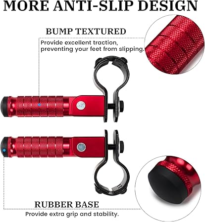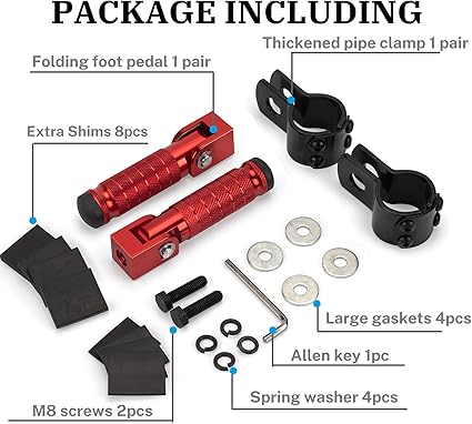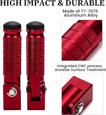 Q205.00 Estriberas plegables M8 de 90 grados para motocicleta, reposapiés antideslizantes CNC, universales. Ajuste amplio: universal para Morcycle, coche eléctrico, bicicleta, bicicleta eléctrica, ATV, UTV, Go Karts, quads, scooters que utilizan pernos de montaje de 0.315 in/núcleo de tubo de 1.18-1.26 pulgadas, compatible con Honda, Suzuki, Yamaha, Aprilia, Triumph, Kawasaki, etc Aluminio CNC: Hecho del proceso CNC integrado de aleación de aluminio T7-7075, tratamiento superficial anodizado perfecto. Evita la oxidación y los arañazos, lo que aumenta la resistencia para evitar la oxidación y los arañazos, lo que aumenta la resistencia a la corrosión y al desgaste Diseño antideslizante: estas estriberas están diseñadas con una superficie moleteada extra profunda y una base de goma antideslizante, proporcionando una excelente tracción, agarre adicional y estabilidad para mayor tranquilidad Plegable de 90 grados: con una barra de soporte que se puede plegar y bloquear a 90 grados. haciéndolos menos propensos a sufrir daños o engancharse en cualquier cosa. Doblarlos cuando sea necesario y guardarlos con facilidad Fácil instalación: Simplemente reemplace directamente las clavijas originales o los soportes de montaje fijos en ambos extremos. Instalación no destructiva. El paquete incluye 1 par de estriberas, 1 par de abrazaderas de tubo gruesas. 1 kit de accesorios de montaje. Enviamos a toda la republica pago contra entrega. Aceptamos tarjetas de credito y debito.