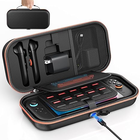 Q265 Estuche de transporte para Nintendo Switch 2 2025 / Switch OLED / Switch Carga en el interior de forma segura: con un puerto de paso integrado en el interior, carga en la funda del interruptor 2 sin sacar la consola incluso sobre la marcha. Mención: el cable de carga, la consola y el joypad no están incluidos. Carcasa rígida con protección interior suave: fabricada con carcasa rígida de EVA e interior suave, la funda de viaje Switch 2 protege la consola tanto desde el interior como el exterior. Manténgase siempre a salvo de caídas, arañazos, agua o sacudidas. 【Adaptador y almacenamiento de Joypad】 Almacena la mayoría de los accesorios de interruptor 2 como adaptador de CA, joypad, cables, etc. en una ranura personalizada. La funda de transporte Switch 2 ofrece un amplio espacio para que el viajero lo almacene. Saca 22 tarjetas de juego: ya no hay necesidad de otro estuche de tarjetas de juego para cambiar. 22 ranuras son lo suficientemente apretadas como para fijar la tarjeta durante el viaje. La tarjeta no se sacudirá y perderá sin previo aviso. También para otras consolas: viene con una almohadilla adicional, el interruptor original y la consola OLED para Nintendo pueden mantenerse estables incluso en un espacio más grande. El adaptador y la parte de almacenamiento del joypad también son adecuados para cambiar una versión. Enviamos a toda la republica pago contra entrega. Aceptamos tarjeta de crédito y debito.