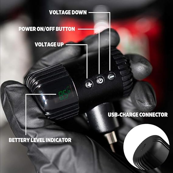 Q295.00 EZTAT2 Portex G2 Mini Batería Portátil Fuente de Alimentación Inalámbrica RCA EZTAT2 Portex Generation 2 (Gen2) es la versión de actualización de la batería del Portex con visualización LED verde. Mini portátil, peso ligero (65 g/2,3 oz), fácil de transportar, última intervensión. Con el rápido tiempo de carga de 2 horas, puede durar hasta 5 horas de tiempo de trabajo dependiendo del uso personal y la máquina. Voltaje de salida de funcionamiento: 5 V a 12 V, conexión: RCA / CC. Se adapta a todas las máquinas de tatuaje estándar RCA o DC Connect, forro y sombreado. Potente: hay 8 voltajes de salida, que se muestran en la visualización LED. Tamaño: 62 mm x 34 mm x 50 mm, 1 cable de carga USB incluido. Creado y fabricado por EZ , 60 días de garantía de reemplazo desde la fecha de compra solo para baterías que no funcionan. Enviamos a toda la republica pago contra entrega. Aceptamos tarjeta de crédito y debito.