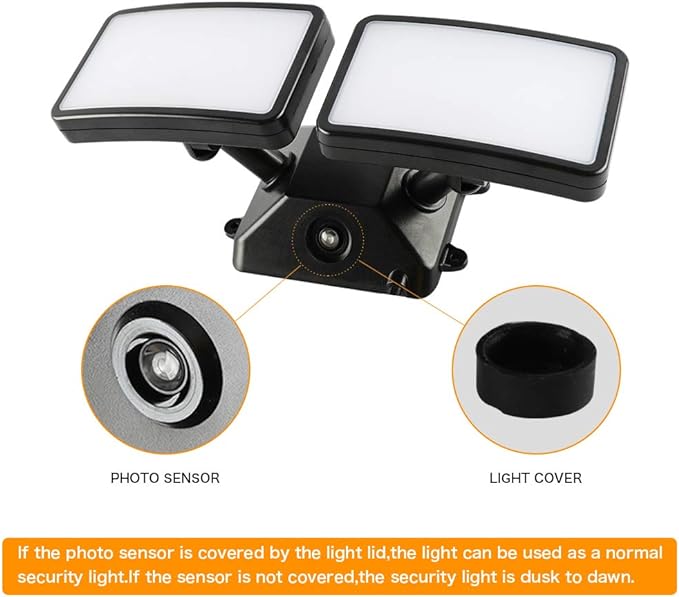 Sensor de luz integrado: nuestra luz de seguridad LED del atardecer al amanecer está equipada con un sensor de luz integrado, que detecta la intensidad de la luz externa con precisión. Se enciende automáticamente al anochecer y se apaga al amanecer. Para evitar parpadeo, no bloquees objetos ni tengas paredes delante de la lámpara