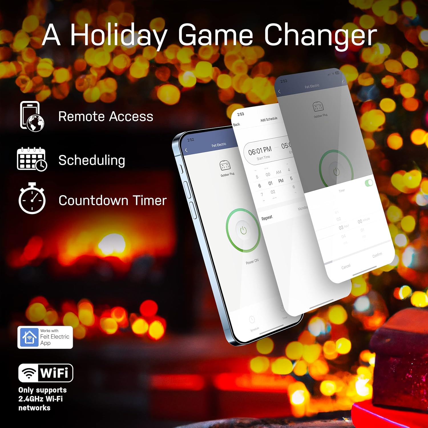 Feit Electric WiFi Funciona con Alexa y Google Home, Feit App, No se requiere concentrador, Control remoto desde cualquier lugar Enchufe inteligente de 15 amperios, interior, 120 voltios, Plástico, Blanco