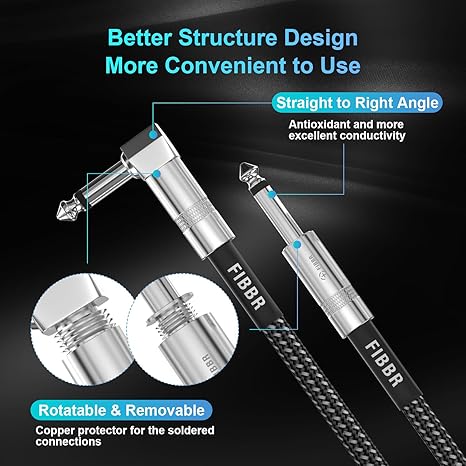 Q345.00 FIBBR Cable de guitarra (10 pies), cable de instrumento de ángulo recto de 1/4 para bajo eléctrico. Cable de guitarra de versión actualizada: el cable de guitarra FIBBR en ángulo recto es una versión actualizada del cable original para instrumento de guitarra, con rechazo de ruido mejorado y antiinterferencia, gracias a su escudo trenzado OFC de alta densidad al 97% y aislamiento de material TPE de mayor calidad. No te preocupes por la compatibilidad: el acorde de guitarra FIBBR es compatible con una amplia gama de dispositivos que tienen una interfaz de 1/4 de pulgada, como guitarra acústica eléctrica, mezclador, amplificador de potencia, bajo, ukelele, altavoz, micrófono, teclado, efector de pedal, órgano electrónico, tambor, decodificador, ecualizador y otros instrumentos musicales. También se puede utilizar para dispositivos domésticos inteligentes, altavoces de karaoke, audio profesional de escenario y más. Haz que el sonido se escuche: el cable de guitarra FIBBR de alta calidad tiene cobre sin oxígeno (OFC) de alta pureza 24 AWG en los conductores centrales y escudo aislante, lo que mejora la transferencia de señal y la estabilidad, asegurando una transmisión de audio rápida y clara con una pérdida de señal mínima. El público escuchará el sonido original que hace la guitarra. Con el cable de guitarra FIBBR puedes decir adiós al sonido de la corriente eléctrica y disfrutar de la mejor experiencia musical. El material es mejor, todo el cable duradero: el cable de guitarra FIBBR tiene una nueva chaqueta de nailon trenzado que está probada para soportar más de 18000 curvas, por lo que es más duradero, flexible y sin enredos que otras chaquetas de plástico. También tiene una carcasa de cobre giratoria y una goma interna especial que protege las conexiones soldadas y evita que el núcleo vibra, resolviendo el problema de interferencia electromagnética de ruido y asegurando la seguridad de uso. Confía en la fibra, siempre estamos aquí: el cable de guitarra FIBBR Instrument tiene un enchufe niquelado de 1/4 de pulgada en ángulo recto que es antioxidante y excelente conductividad, asegurando una conexión segura en cualquier instrumento. También viene con una garantía de por vida y servicio al cliente las 24 horas y soporte de equipo de tecnología profesional. Enviamos a toda la republica pago contra entrega. Aceptamos tarjeta de crédito y debito.