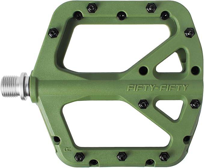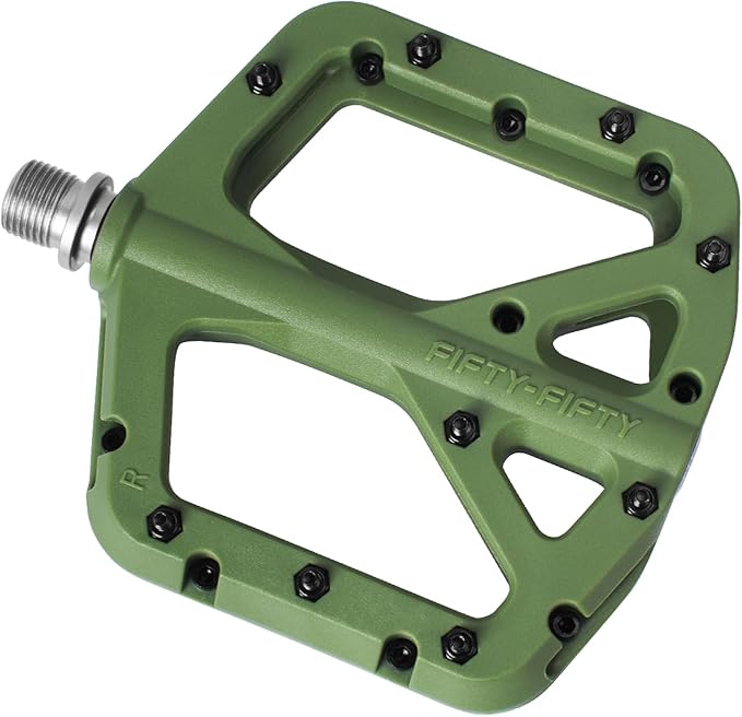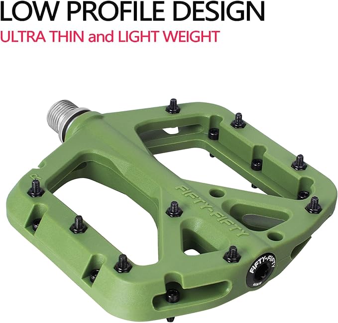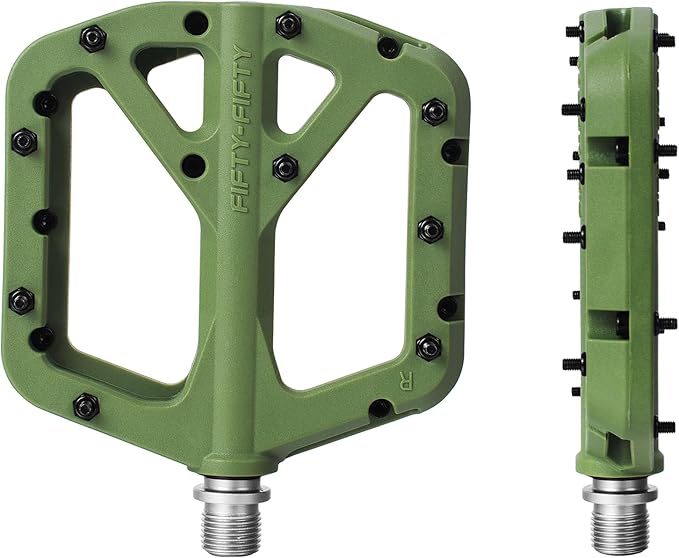 Q420.00 FIFTY-FIFTY Pedales de bicicleta de montaña, pedales compuestos de nailon MTB Duradero y resistente: los pedales de bicicleta de montaña están hechos de cuerpo de pedal compuesto de nailon duradero y husillo Cr-Mo de alta resistencia que tiene resistencia a prueba de golpes, abrasión y corrosión Excelente agarre: los pedales planos de bicicleta de montaña diseñados con 9 pasadores de acero reemplazables por lado proporcionan un gran agarre y extremadamente fiable Plataforma ultrafina y grande: la bicicleta rebota solo 0.7 pulgadas de grosor, diseño ultra delgado que te da la máxima holgura para reducir los golpes de pedal y desviar los obstáculos del sendero, la plataforma grande súper agarre de 4.173×4.094 in (L x W) mantiene tus pies plantados incluso en los senderos más ásperos Peso ligero y fácil de instalar: los pedales MTB solo pesan 12.38 oz / 12.3 onzas por par, marca de L para izquierda y R para la derecha. Los pedales de bicicleta con rodamientos sellados protegen los husillos del agua y el polvo, te permiten disfrutar del ciclismo en la lluvia, escalada, cuesta abajo Universal: husillo estándar de 9/16 “de los pedales de bicicleta se adapta a todas las montañas, enduro, cuesta abajo, freeride, sendero, campo traviesa, bicicleta de carretera, engranaje fijo, bicicleta eléctrica, E-MTB, grava Enviamos a toda la republica pago contra entrega. Aceptamos tarjeta de crédito y debito.