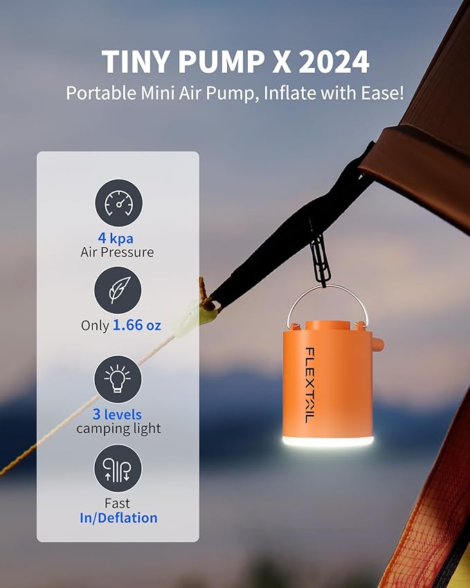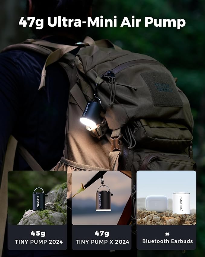 - ➤【Más pequeña y ligera】La bomba pequeña mejorada 2024, con un peso de solo 1.6 onzas y compacta con 1.6 x 1.7 x 2.1 pulgadas, incluye un práctico lazo para colgar, por lo que es fácil de fijar a tu mochila o deslizarse en tu bolsillo. La bomba de aire portátil diseñada complementa perfectamente aventuras al aire libre como camping, senderismo o días de playa