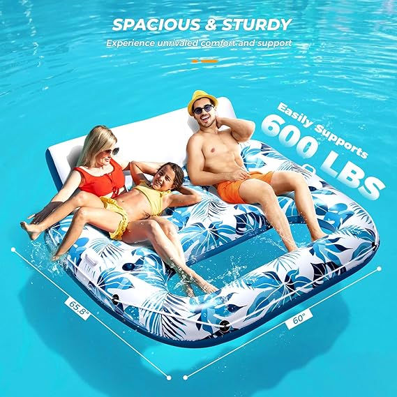 Q440 Flotadores de piscina de 1 a 3 personas, extra grande, silla reclinable reclinable con respaldo PVC de alta calidad con borde más ancho de 0.315 in: hechos de material de PVC de alta calidad, los flotadores de piscina para 2 personas cuentan con bordes ensanchados de 0.315 pulgadas para una durabilidad excepcional, asegurando que es a prueba de fugas y resistente a las explosiones. Relájate y disfruta del descanso sin preocupaciones 【Espacioso y cómodo】El tamaño grande de 60 x 65.8 pulgadas de dos flotadores de piscina preson todos los tamaños de cuerpo ofrece una zona de asiento espaciosa y acogedora que puede soportar hasta 600 libras. 2 asas resistentes y una cuerda de agarre envolvente para un fácil uso y control 【Respaldo amplio y reposapiés suave】Experimenta la máxima comodidad con un generoso respaldo y un acogedor reposapiés de flotadores de lago para adultos. Inclínate y relájate mientras tomas el sol, disfrutando de un apoyo óptimo y relajación durante horas Experiencia fresca para tomar el sol: la silla flotante para 2 personas tiene una malla suave y fresca y una zona de pie refrescante para ayudarte a mantenerte fresco y relajado bajo el sol. El sillón reclinable de agua también viene con 2 portavasos para que disfrutes de tus bebidas favoritas mientras te reclinas Enviamos a toda la republica pago contra entrega. Aceptamos tarjeta de crédito y debito.