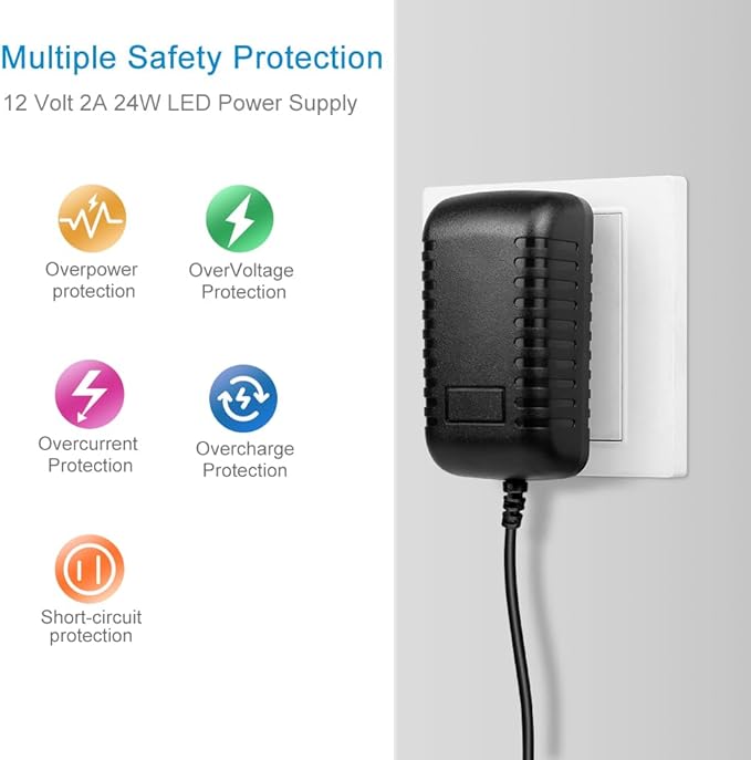 【Amplia aplicación de fuente de alimentación de tira LED】Convierte CA 110 V a CC 12 V, el adaptador de fuente de alimentación CC de 12 V es ideal para conectarse con la tira LED de un solo color o tira de luz RGB, luces de cadena LED, enrutadores inalámbricos, lámparas de cuento y otros dispositivos de iluminación de bajo voltaje. Nota: La fuente de alimentación de 12 voltios solo para uso en interiores