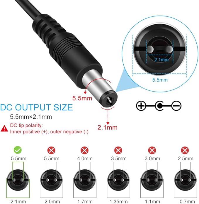 【Aviso de fuente de alimentación de 12 V】Ten en cuenta que la potencia total del uso de dispositivos no debe exceder la potencia máxima (24 W) de este adaptador de corriente. Fuente de alimentación no regulable, y sin interruptor.