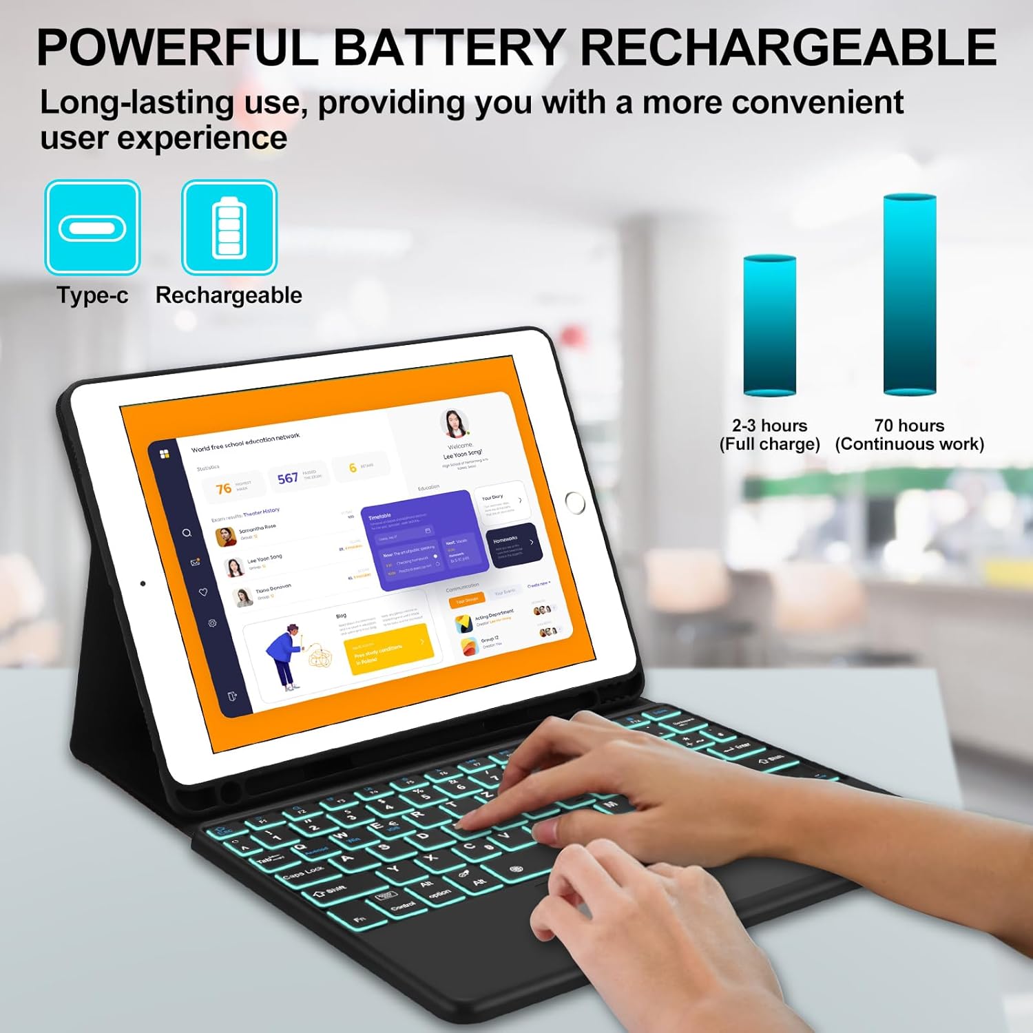 Q480 Funda con teclado táctil para iPad de 9ª/8ª/7ª generación de 10.2 pulgadas, Pro 10.5