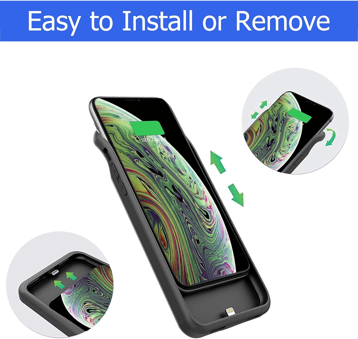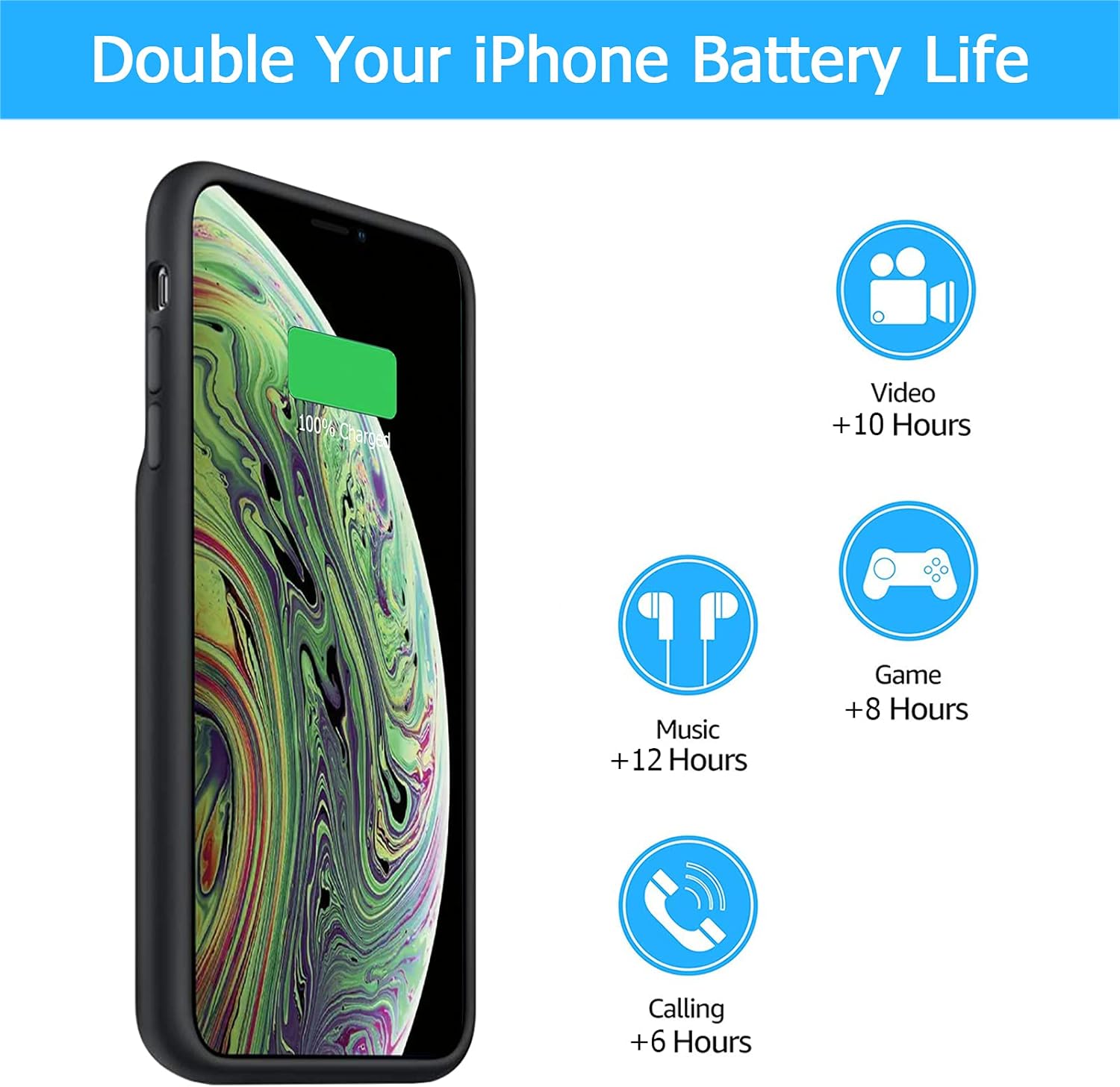 La batería de larga duración de 7000 mAh puede duplicar el tiempo de uso diario de tu iPhone X/XS y mantener la potencia del iPhone X/XS por más tiempo. Disfruta de más tiempo de conversación, música, películas y navegación por Internet. La mejor opción para viajar, acampar y trabajar. El diseño portátil, carga en cualquier momento y en cualquier lugar.