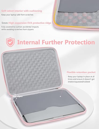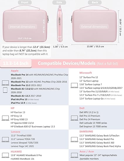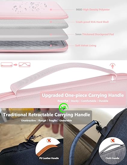 Q285 Funda rígida para laptop de 13.3 a 14 pulgadas para MacBook Pro 14 M5/M4/M3/M2/M1, MacBook Pro/Air Dimensiones internas: 12.4 in x 8.7 in x 1.0 in. Compatible con MacBook Pro 14 M5/M4/M3/M2/M1 Pro/Max 2026-2021 (Modelo: A3434, A3401, A3185, A3112, A2992, A2918), MacBook Air 13 M3 M2 M1 2025-2018 2, MacBook Pro 1 3 M2 M1 2025-2012, portátil Surface de 13.8″-13.5″, Surface Pro, iPad Air 13, iPad Pro 13/12.9, Dell XPS 13, Dell Pro 13/14 Premium, HP Envy (X360) 13, HP Spectre X360 13/14, Huawei MateBook 13 3S, Huawei Mate Libro 14/D 14, y la mayoría de laptops/tabletas delgadas de 13″-14″, etc. Protección superior multicapa de 360°: el material exterior está hecho de poliéster de alta densidad 900D resistente al agua, mientras que el interior está laminado con una carcasa de EVA semirrígida con bordes de protección de bordes de 0.197 in de grosor y forro de terciopelo suave, que protege perfectamente su dispositivo de caídas accidentales y golpes. Un bolsillo interno elástico ha sido cuidadosamente diseñado para mantener el portátil en su lugar y garantizar que no se agite o raye Asa mejorada de una sola pieza y cremallera YKK: el asa de transporte moldeada de una sola pieza tiene acolchado integrado para un agarre más cómodo. Esta funda cuenta con cremallera YKK de alta calidad que se desliza increíblemente suavemente y tiene 2 tiradores de cremallera que permiten que tu portátil se coloque dentro de la funda para cargarla y se cierre con cremallera para protección. Cierre de solapa de 360° para un fácil acceso a tu laptop Bolsa de accesorios multifuncionales: Medidas 7.28″ x 4.33″ x 1.77″. Tiene un forro de terciopelo suave y 2 pequeños bolsillos divididos que proporcionan un amplio y razonable espacio de almacenamiento para accesorios como cargador, mouse, cables, artículos están mejor protegidos mientras te permiten encontrar rápidamente lo que necesitas. Se puede utilizar como una bolsa de cosméticos/bolsa de cuidado de la salud cuando sea necesario. Enviamos a toda la republica pago contra entrega. Aceptamos tarjeta de crédito y debito.