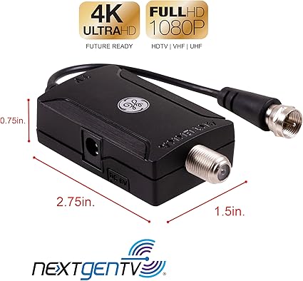 Q195 GE Amplificador de antena de TV digital HD para interiores, amplificador de señal de antena de bajo Compatibilidad universal: diseñado para el futuro de la televisión, este amplificador es totalmente compatible con 1080p y 4k Ultra HD para ofrecer imágenes y sonido de alta calidad y funciona con todas las marcas de TV y antenas. Tipo de fuente de alimentación: eléctrico con cable Filtro 4G/5G LTE – La tecnología PureAmp de este amplificador interior incluye un filtro 4G/5G LTE incorporado que bloquea la interferencia no deseada del teléfono celular y aumenta la señal para una recepción mejorada y cristalina de canales HDTV, VHF y UHF. Amplificador de señal: este amplificador de bajo ruido aumenta la intensidad de la señal para compensar la pérdida de cable y minimiza las caídas de recepción para fortalecer la señal de los canales disponibles que su antena ya está recibiendo. El número de canales y la calidad de recepción variarán según la distancia de las torres de transmisión, la posición de la antena y los obstáculos, incluyendo colinas, edificios y árboles. Compatible con NextGen TV (ATSC 3.0) – Experimenta este nuevo estándar de transmisión para TV por aire tan pronto como esté disponible en tu área y disfruta de imagen y sonido superiores, una señal de transmisión más fuerte, audio premium, color más rico, tasas de actualización más rápidas, integración opcional con tu servicio de internet para características adicionales y más. Enviamos a toda la republica pago contra entrega. Aceptamos tarjeta de crédito y debito.