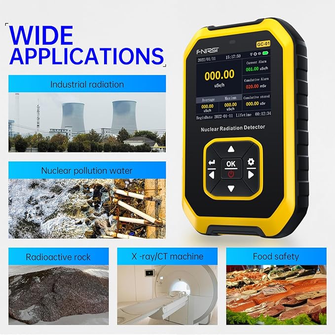 Q595.00 Geiger – Detector de radiación nuclear de contador – Dosímetro de radiación FNIRSI con pantalla LCD Detector de radiación nuclear: detector de radiación nuclear FNIRSI GC-01 Geiger con sensor GM integrado, capaz de detectar rayos gamma, beta y X. Equivalente de dosis acumulada: 0,00 uSv-500,0 mSv. Rango de energía: 48 KeV-1.5 MeV ≤ más/menos 30% (para 137 Csγ) 【Alarma inteligente】3 modos de luz/vibración/sonido. El contador Geiger puede establecer el valor actual de la alarma de dosis y el valor acumulativo de la alarma de la dosis. Ya sea en estado de sueño o activo, el monitor de radiación alarmará si la dosis de radiación detectada excede el umbral de alarma Contador Geiger multifuncional: nuestro contador geiger tiene otros ajustes diferentes, como ajustes de alarma, ajuste del reloj del sistema y configuración de unidad y cambio de idioma, puedes operar en inglés (por defecto) o chino. Fácil operación con una sola mano Principio de funcionamiento: el medidor de radiación FNIRSI GC-01 utiliza una tráquea o habitación pequeña como sonda para detectar radiación ionizante gamma/beta/rayos X. La ionización por radiación genera pares de iones, los iones se agrandan y se convierten en conteos de pulsos eléctricos para medir Áreas de aplicación: ampliamente aplicado en el entorno donde existe radiación ionizante. Tales como radiación de mejoras para el hogar, estudio geológico, hierro, vehículos de inspección, plantas de energía nuclear, industria, radiología, laboratorios de radiología y así sucesivamente Enviamos a toda la republica pago contra entrega. Aceptamos tarjeta de crédito y debito.