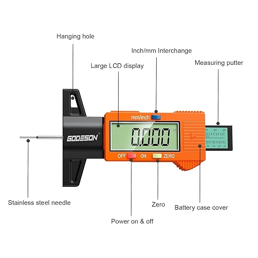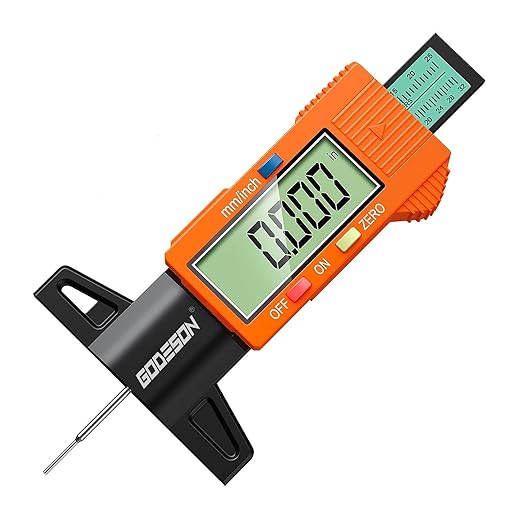 Q225.00 GODESON Medidor de profundidad de banda de rodadura de neumáticos, medidor digital de profundidad 1. Medición precisa: Este medidor de profundidad de neumáticos cuenta con una barra codificada por colores para una fácil interpretación de los niveles de profundidad de la banda de rodadura. El rango de medición es de 0-1 pulgada / 0.000-1.000 in, con la capacidad de medir con precisión la profundidad de la banda de rodadura de hasta 0.000 in. 2: Fácil operación: Simplemente ponga a cero la profundidad de la banda de rodadura del medidor de neumáticos y coloque el cabezal de medición en la banda de rodadura del neumático para obtener rápidamente resultados de medición precisos, con conversiones entre pulgadas y milímetros. 3. Pantalla LCD grande: equipado con una gran pantalla LCD para obtener resultados de medición claros y fáciles de leer. 4. Compatibilidad universal: adecuado para todos los neumáticos de vehículos, este medidor de banda de rodadura de neumáticos es versátil. 5. Diseño naranja vibrante: destaca con el vibrante diseño naranja de este medidor de profundidad digital. Enviamos a toda la republica pago contra entrega. Aceptamos tarjeta de crédito y debito.