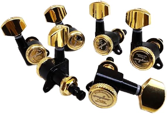 Q495.00 Guyker Afinadores con broche para guitarra (6 para la derecha) – Clavijas de afinación Relación de transmisión de precisión 1:18 con lubricación sellada, carcasas fundidas y perillas metálicas. Relación de engranajes – 1:18, diseñado para adaptarse a los agujeros de clavijeros de 10 mm modernos. Cómodo y fácil para ajustar la tensión de la cuerda. Botón de forma hexagonal con carcasa sellada y etiqueta de fijación de 45 grados. Accesorios de montaje (tornillos, bujes y arandelas) incluidos. Máquinas de afinación con bloqueo para guitarra con engranaje interno resistente, resistentes y convenientes. Fácil de instalar, fácil de reemplazar tus viejas o sucias clavijas de afinación de guitarra. Por favor, verifica el dibujo de parámetros en las imágenes adjuntas antes de realizar tu pedido. Enviamos a toda la republica pago contra entrega. Aceptamos tarjeta de crédito y debito.