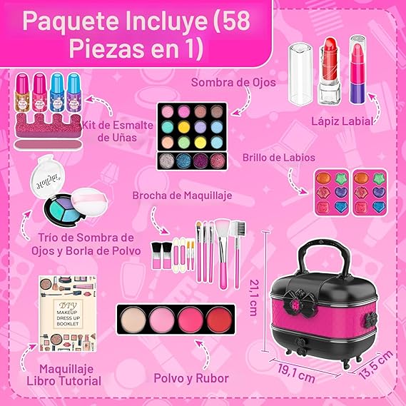 Q310.00 Hollyhi Kit de maquillaje infantil de 58 piezas para niña, juguetes de princesa, juego de cosmética Kit de maquillaje bonito para niñas: juego de maquillaje de belleza con casi todo lo necesario para maquillaje y pintura de uñas, incluyendo 1 folleto tutorial de maquillaje, 14 sombras de ojos, 2 cejas, 3 rubores, 1 cera de sombra de ojos, 12 brillos de labios, 2 lápices labiales con 3 colores, 1 polvo prensado, 11 brochas de maquillaje, 4 esmaltes de uñas, 1 lima de uñas, 1 estuche cosmético con espejo y más. Una vez que las niñas tengan este kit de maquillaje, se convertirán en la princesa más hermosa Juguetes de maquillaje de seguridad de material: el kit de maquillaje de simulación está hecho de material renovable y de alta calidad que cumple con los estándares de los juguetes internacionales para niños (certificados CPSIA, CPC, ASTM) para la seguridad, y se ha probado en el cuerpo, puede haber una ligera fragancia inofensiva cuando la caja de maquillaje se acaba de abrir, pero se puede utilizar con confianza. Fácil de lavar con agua y jabón, no deja manchas en la piel, ropa o muebles. Amigable para que los niños se maquillen. 【Sin desorden y fácil de almacenar】: este es un juego de maquillaje rosa compacto para niñas, todos los artículos vienen empaquetados en una funda de transporte ordenada para un fácil almacenamiento. Hay colores fijos en el estuche de cosméticos, los niños pueden ver todos los colores de un vistazo para que puedan elegir el color favorito, y no es fácil perderse y evitar romperse durante el transporte. Fomenta la creatividad y el entretenimiento: viene con un folleto tutorial de maquillaje. Jugar maquillaje puede ayudar al niño a mejorar la habilidad motriz fina, con la niña explorar las hermosas posibilidades infinitas mientras desarrolla la creatividad y la imaginación. Proporciona tiempo interactivo y de entretenimiento familiar para que la niña pueda fingir que se está maquillando como mamá y pintando esmalte de uñas. Juego de tocador de regalo para niñas: desde disfraces hasta fiestas y actividades, o simplemente tiempo de princesa, hay muchas herramientas de maquillaje en esta caja de maquillaje con un asa. Hermosamente formado, redondeado y sin rebabas, es ideal para cumpleaños, Navidad, Halloween u otras vacaciones, juguetes de maquillaje para niños de 3, 4, 5, 6, 7, 8, 9, 10, 11, 12 años en adelante. ¡Pueden tener su propio maquillaje para cumplir con el sueño de la princesa!. Enviamos a toda la republica pago contra entrega. Aceptamos tarjeta de crédito y debito.