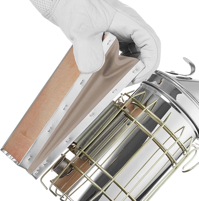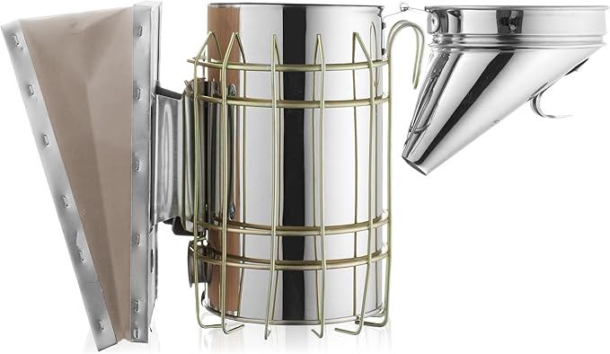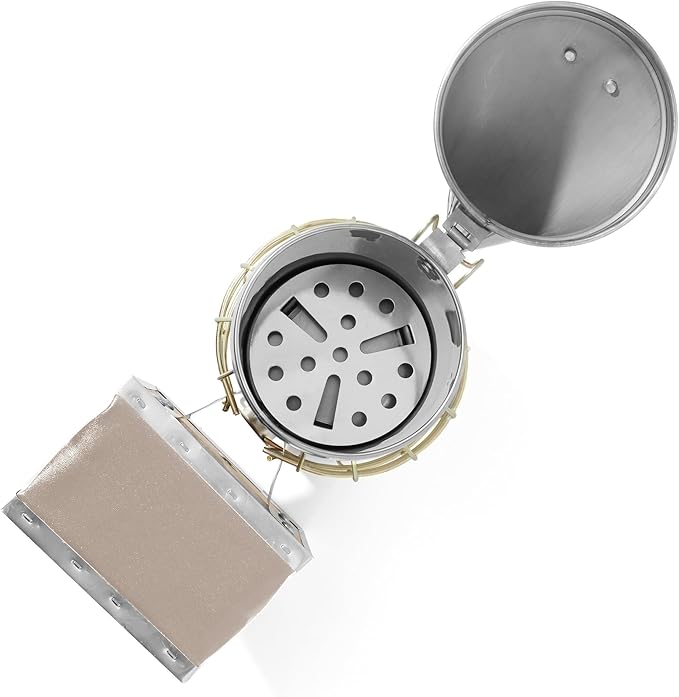 - Fumador de colmenas esencial: La herramienta más importante en un arsenal de apicultura es el fumador de colmenas. Produce humo, calma a las abejas y le permite realizar inspecciones de rutina de forma segura en su colmena y colonia sin alejar permanentemente a las abejas.