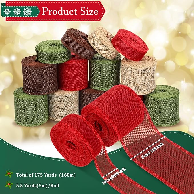 Q385.00 Hotop 32 rollos de cintas navideñas con borde de alambre de 175 yardas Cantidad generosa: la cinta de alambre para hacer lazos viene con un impresionante 32 cintas, 4 colores; la cinta es de alambre, que es fácil de cuidar; y esto permite una gran cantidad de exploración creativa, o para decorar envoltorios de regalo y manualidades; las cantidades masivas la convierten en una buena opción para fiestas, eventos o necesidades de producción por lotes Material confiable para la artesanía: nuestras cintas de borde con alambre de Navidad están hechas de arpillera de calidad para un color duradero; y cuentan con cables de hierro suave en ambos lados para una fácil fijación y forma; esta combinación garantiza que la cinta sea confiable y agradable al tacto; adecuada para muchas manualidades o proyectos de bricolaje, puedes confiar en que nuestro producto ofrece buenos resultados Tamaños versátiles para varias aplicaciones: la cinta de Navidad está disponible en 2 tamaños, 2.4 pulgadas x 5.5 yardas y 1 pulgada x 5.5 yardas; y puede satisfacer una variedad de demandas de manualidades; tanto proyectos pequeños como grandes se pueden atender, haciendo de nuestro producto un complemento esencial para tus suministros de manualidades Amplio alcance de aplicaciones: los rollos de cinta de arpillera son un producto versátil para decoraciones de Navidad como lazos, árboles de Navidad, decoraciones de fiesta de Navidad, envoltura de regalo, coronas de Navidad, ropa, accesorios para el cabello y más; son hermosos y funcionales, añadiendo al ambiente navideño Abalorio decorativo: estas cintas con borde con alambre no solo son elementos funcionales hechos a mano, sino que también añaden un encanto impresionante a tus proyectos debido a su atractivo decorativo; añaden un toque rústico a muchas manualidades o decoración y son adecuadas para arcos, ventanas, ramos, arreglos florales, decoraciones, envoltorios de regalo, puertas, jarrones, porche, coronas, decoraciones de árboles y mucho más Enviamos a toda la republica pago contra entrega. Aceptamos tarjeta de crédito y debito.