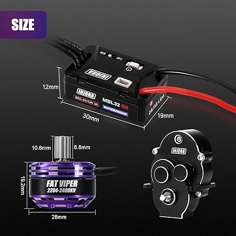 Q745.00 INJORA MBL32 G2 impermeable sin escobillas ESC y 2204 Fat Viper Outrunner Motor El INJORA MBL32 G2, basado en el firmware AM32, está meticulosamente diseñado para Micro Crawlers y es programable. Suave y lineal a bajas velocidades, potente y agresivo a altas velocidades. Funciona más silenciosamente que los sistemas cepillados, produciendo prácticamente ningún ruido. MBL32 G2 cuenta con un BEC incorporado con salida ajustable: 6V/7.4V. Diseño impermeable para rendimiento en todo tipo de clima. Soporta programación de PC a través de la tarjeta programadora USB (no incluida). Los ajustes de fábrica están optimizados para motores INJORA 1721/2204; no se recomiendan ajustes. Múltiples protecciones: protección de baja tensión, a prueba de fallos y bloqueo del rotor. El motor TRX4M 2204 Fat Viper outrunner le dará a tu automóvil un mejor rendimiento de conducción. Enviamos a toda la republica pago contra entrega. Aceptamos tarjeta de crédito y debito.