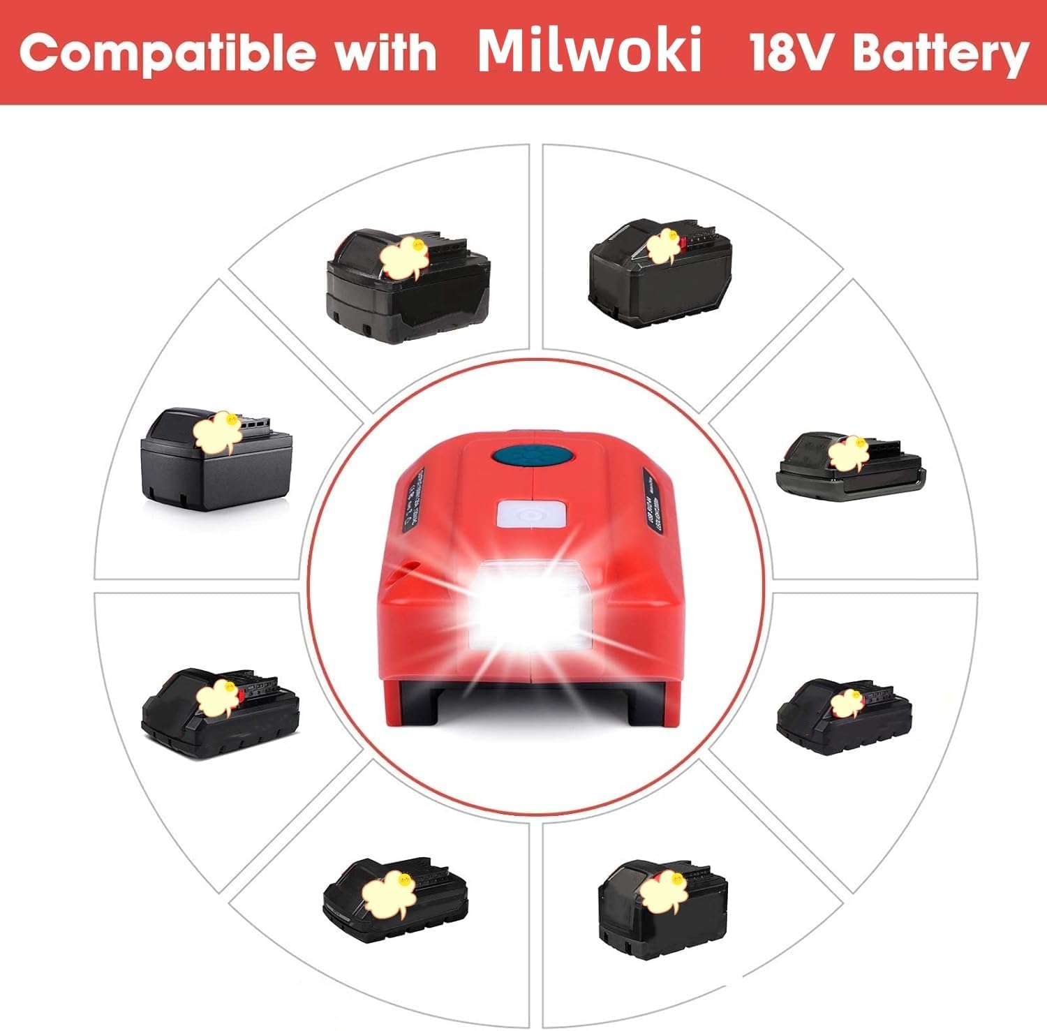 Modelos aplicables: el inversor de batería portátil es compatible con baterías M18 48-11-1820 48-11-1822 48-11-1840 48-11-1850 48-11-1852 48-11-1860 48-11-1862, etc.