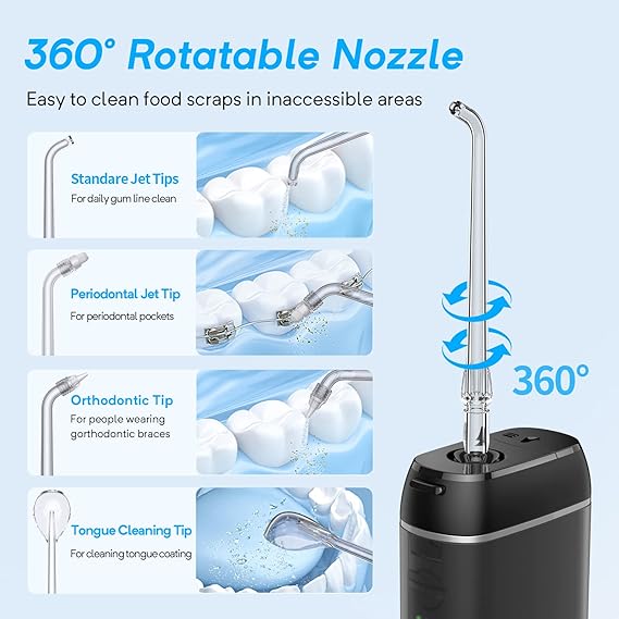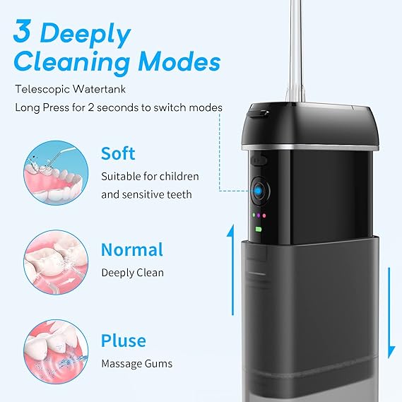 Q240.00 Irrigador de agua para dientes, mini irrigador de hilo dental portátil (solo maquina y sin caja) Tres modos de limpieza: el irrigador dental de agua está diseñado con modos suaves, pulsos, fuertes, función de memoria y bajo ruido, que puede satisfacer diversas necesidades orales. Incluso si tu irrigador dental está apagado, la función de memoria garantiza que tu próximo uso sea tu modo preferido Limpieza profunda: el irrigador dental de agua puede ofrecer un pulso de agua de alta presión 1400 veces una fuerte presión de agua, puede limpiar poderosamente el 99.99% de los restos de alimentos y la placa, y resolver los problemas que el cepillado tradicional no puede resolver Boquilla giratoria de 360°: nuestro irrigador oral ofrece una boquilla giratoria de 360 grados que te permite usarlo desde cualquier ángulo y te ayuda a limpiar áreas de difícil acceso. Puede limpiar los residuos de alimentos en todos los dientes y prevenir varios problemas orales Listo para viajar: el irrigador dental está diseñado con un tanque de agua retráctil y una boquilla de almacenamiento de agua integrada, lo que reduce en gran medida el volumen del producto y es conveniente para viajar Lo que obtienes: irrigador dental ENPULY M6P, 4 boquillas de repuesto, 1 adaptador de 5 V/1 A, 1 bolsa de viaje, 1 cable USB-C sin preocupaciones. Enviamos a toda la republica pago contra entrega. Aceptamos tarjeta de crédito y debito.