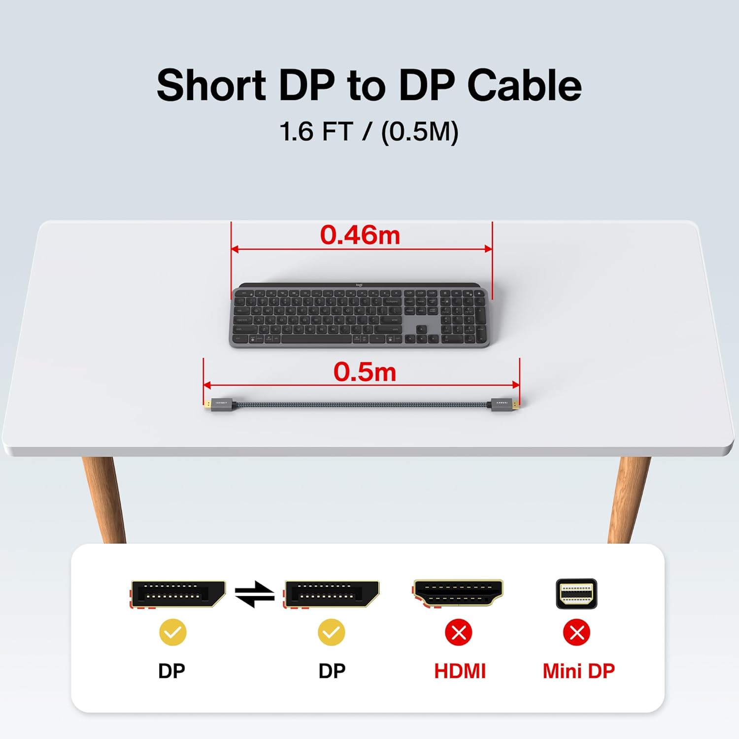 Experiencia sin parpadeos: el cable DisplayPort iVanky de 1.6 pies (no HDMI) es bueno para transmisión de video o juegos. La tasa de actualización de 2K a 165Hz reduce el parpadeo para darte una experiencia de juego realmente cómoda y también es compatible con DP, DP++, y DisplayPort++.