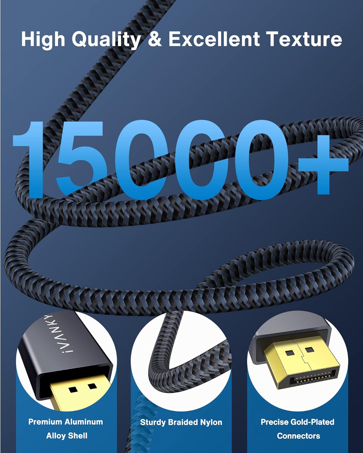 ✨[Ultra durabilidad] A diferencia de los recubrimientos de PVC convencionales, el cable DP a DP 1.2 con recubrimiento de nailon trenzado de calidad soporta más de 15,000 dobleces, no se rompe con facilidad. Blindaje múltiple, conectores chapados en oro de 24K y cobre estañado de 30 AWG, proporcionan una transmisión de datos confiable sin interferencias y mejoran la estabilidad de la transmisión.