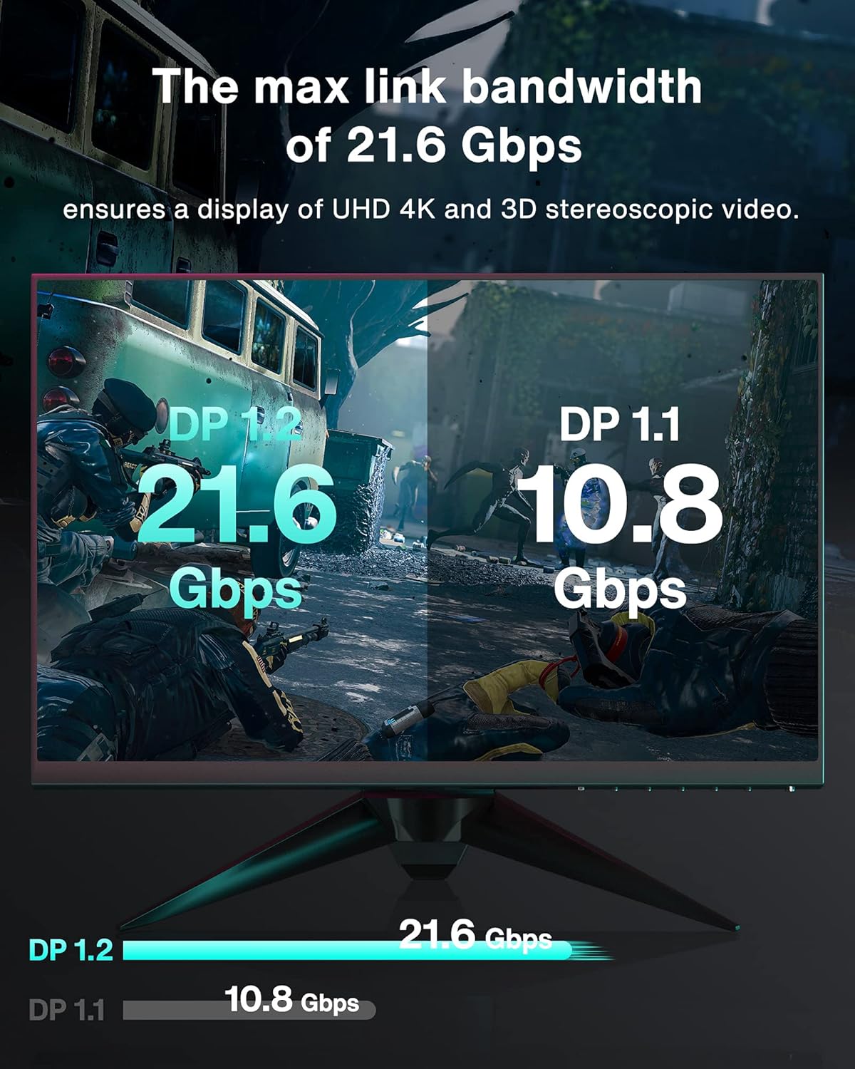Alta resolución y tasa de actualización: El cable DP a DP 1.2 admite una tasa de actualización de hasta 165Hz bajo resolución 2K (2560 x 1440) y UHD 4K (3840 x 2160 @ 60Hz) te permite configurar tu monitor 4K para un escritorio extendido o pantallas espejadas.
