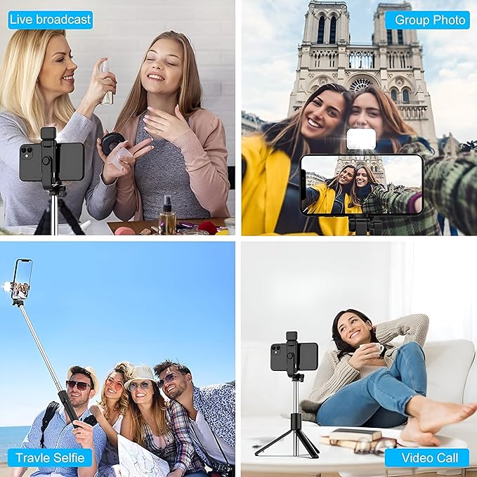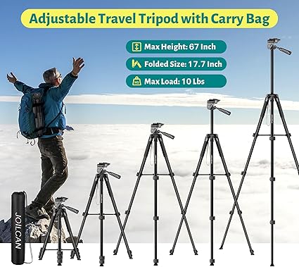 Q285 JOILCAN Trípode para Teléfono, Soporte de Trípode de Cámara de 67″ para iPhone iPad 【Kit versátil de trípode】 El kit de trípode incluye: 1 trípode de cámara de aluminio, 1 soporte universal para teléfono / tableta, 1 control remoto inalámbrico, 1 bolsa de transporte y 1 placa de liberación rápida extra. El trípode para teléfono está diseñado para iPads, teléfonos, cámaras y muchos otros dispositivos, convirtiéndolo en un accesorio versátil para todas tus necesidades de fotografía y videografía. Trípode de aluminio mejorado: cabezal panorámico de 3 vías con trípode de rotación de 360°, hecho de aluminio de alta calidad, con espuma de algodón y patas antideslizantes que hacen que el trípode sea estable para su transporte y uso. Este soporte para trípode pesa solo 1.5 libras, y la carga máxima es de 10 libras, lo que ofrece una estabilidad y durabilidad excepcionales, asegurando que tu dispositivo permanezca seguro y estable durante el uso. 【Trípode remoto inalámbrico】 Equipado con un control remoto inalámbrico, el soporte de trípode te permite controlar fácilmente tu teléfono (iOS 5.0+ y Android 4.3+), cámara o iPad desde una distancia de hasta 33 pies / 10 m de alcance efectivo, permitiéndote capturar la toma perfecta sin tener que tocar el dispositivo. Trípode de viaje portátil: ligero y compacto, el tamaño del trípode de viaje plegado es de 17 pulgadas y puede extenderse 67 pulgadas en segundos, y es fácil de transportar y almacenar. Ya sea que estés viajando o en movimiento, este trípode es un compañero confiable para capturar fotos y videos impresionantes. 【Amplia compatibilidad】 Soporte de trípode con un soporte universal 2 en 1 compatible con iPhone 17 16 15 14 13 12 11 Pro/XS/XR, Samsung Galaxy, iPad Pro 9.7″/10.5″/11.9″, iPad Mini. Y el tornillo de 1/4 pulgadas puede instalarse en Nikon, Canon, otras cámaras digitales, proyectores, miras de detección, luces de anillo. El trípode para teléfono es adecuado para grabar videos, transmisión en vivo, YouTube, videoconferencias y reuniones en línea, vlogging, selfies, fotos de grupo, fotos familiares…(NOTA: El trípode viene con un soporte para tableta y solo es adecuado para dispositivos tableta de hasta 11 pulgadas.) Enviamos a toda la republica pago contra entrega. Aceptamos tarjeta de crédito y debito.